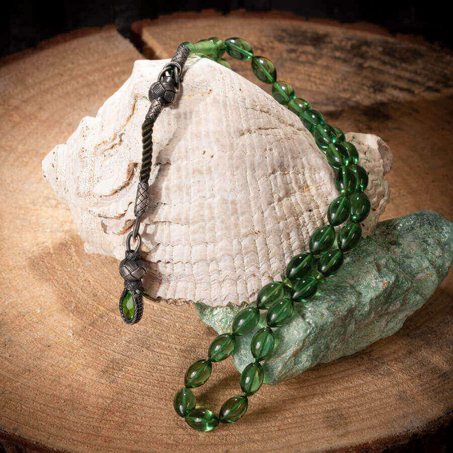 1000 Karat Kazaz-Gebetsperlen aus wassergrünem, gepresstem Bernstein mit Quasten. Gesamtlänge: 32 cm. Quastenlänge: 10 cm. Sogar viele moderne Ärzte kommen nicht vorbei, ohne den Bernstein in ihren Rezepten zu erwähnen. Amber Stone setzt eine spürbare Energie frei. Es ist wirksam bei der Stressbewältigung, da es schlechte Energien sowie neurologische Probleme abwehrt. Es wird empfohlen, es in der linken Hand zu tragen. Man geht davon aus, dass es sich so schneller an die Körpertemperatur anpasst. Es wird auch angenommen, dass diese Schmerzen gelindert werden, wenn der Bernsteinstein auf die schmerzenden Körperteile gelegt wird. Menschen, die häufig unter Gelenkschmerzen und Migräneattacken leiden, haben Amber Stone neben dem Behandlungsprozess mittlerweile zu einem unverzichtbaren Bestandteil ihres täglichen Lebens gemacht. Was ist gepresster Bernstein? Gepresster Bernstein ist ein Harz, das aus Bernsteinpulver und verschiedenen Chemikalien hergestellt wird. Entgegen der landläufigen Meinung enthält es wiederum kein Plastik, also keine petrochemischen Produkte. Gepresster Bernstein gilt aufgrund der Komplexität seines Herstellungsprozesses als besonderes Material. Gepresster Bernstein ist ein Synthesestein, der durch die Wechselwirkung von Bernstein mit anderen Steinen entsteht. Wir präsentieren Squeezed Kehribar, das mit seiner samtartigen Textur und der einfachen Handhabung für Männer unverzichtbar ist, in verschiedenen Ausführungen…
