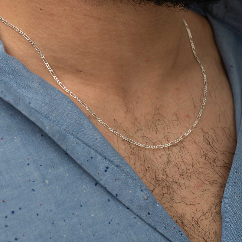 2,1 mm silberne Figarokette – 0,60 Mikron. Silberkettenmodelle sind zweifellos eine der beliebtesten Produktgruppen unter den Silberschmuckstücken. Es schmückt sowohl den Hals als auch die Handgelenke. Sie können es mit Anhängern oder als einfache Kette tragen. Dieses klassische Figarokettenmodell ist aus 925er Sterlingsilber gefertigt. Es wird maschinell in Meterware hergestellt und anschließend von Hand zu Halsketten verarbeitet. Silber wird zudem mit Silber beschichtet, um seinen Glanz lange zu bewahren. Silberne Figarokettenmodelle können sowohl von Männern als auch von Frauen problemlos verwendet werden. Wie alle Silberkettenmodelle wird auch das Figarokettenmodell aus 925er Sterlingsilber von Hand gefertigt, daher kann das durchschnittliche Produktgewicht um ± 10 % variieren. Durchschnittsgewichte – 2,10 mm. 45 cm: 4,50 gr. 50 cm: 5,00 gr. 55 cm: 5,50 gr. 60 cm: 6,00 gr.