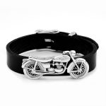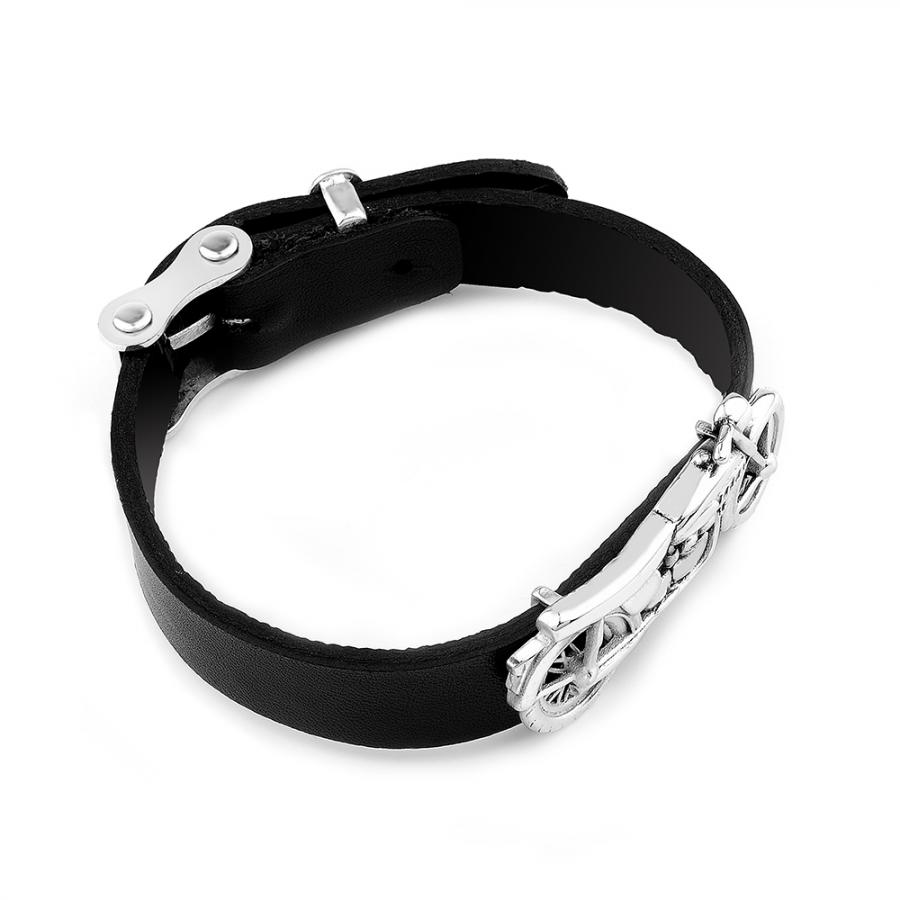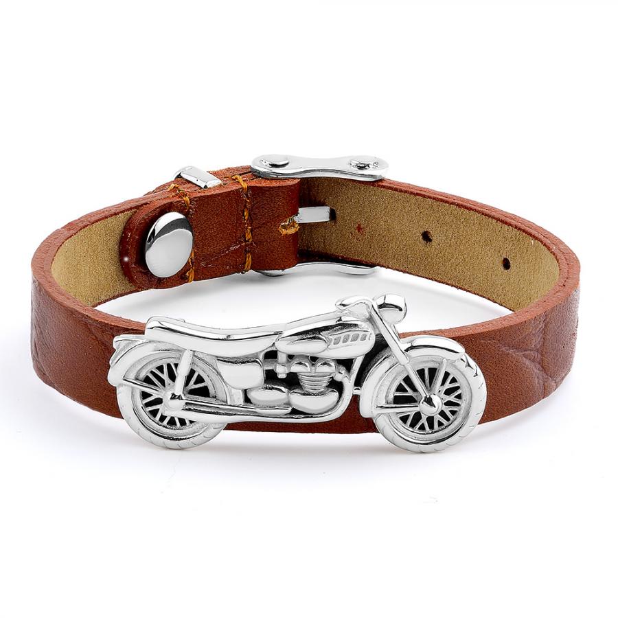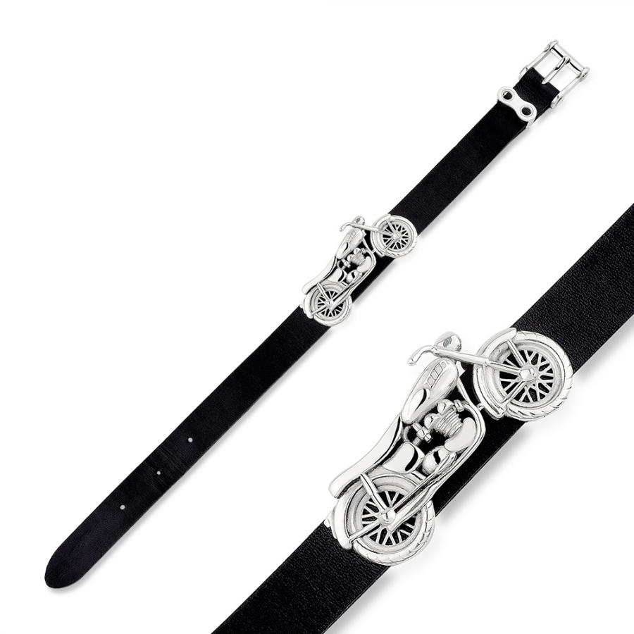 925 Sterling Silber Motorrad geprägtes Original-Lederarmband