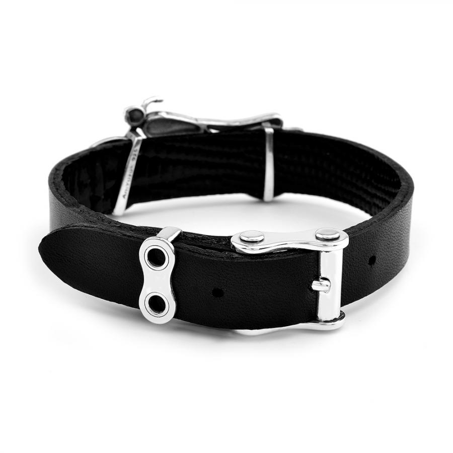 Wicker Design Kuka besticktes Herrenarmband aus schwarzer Stahl-Leder-Kombination