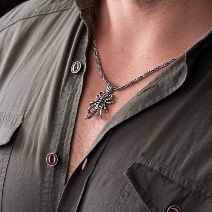 925 Sterling Silber Halskette mit Skorpion-Anhänger und Königskette. Produktmerkmale: Hergestellt aus 925er Sterlingsilber. Längenoptionen sind zwischen 50–60–70 cm erhältlich. Die Dicke der Halskettenkette beträgt 2 mm. Das Gewicht kann je nach Kettenlänge variieren. Auf dem Anhänger befindet sich ein Skorpion-Motiv. Anı Ring ist Ihre zuverlässigste Wahl, wenn es um diese stilvolle Halskette für Herren geht, die ihren Stil in jedem Aspekt des Lebens widerspiegeln möchten.