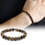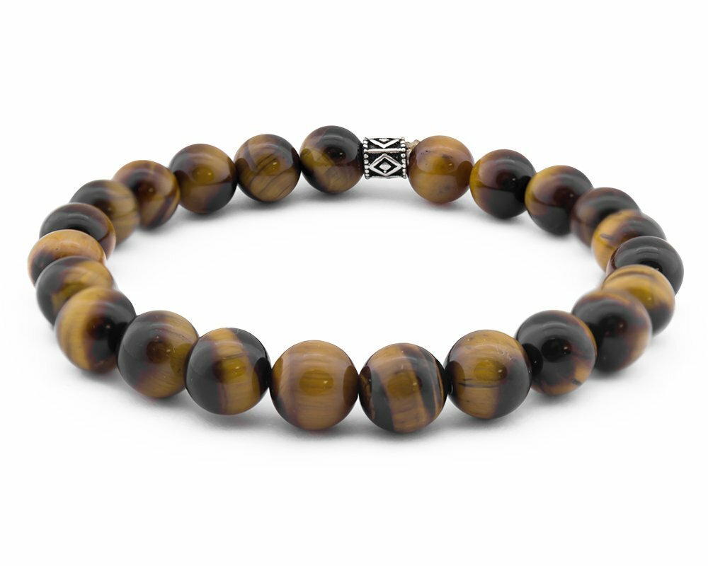 Home Herren Armband Armband aus 925er-Sterlingsilber mit Diamantmuster und Tigeraugen-Kombination im Kugelschliff