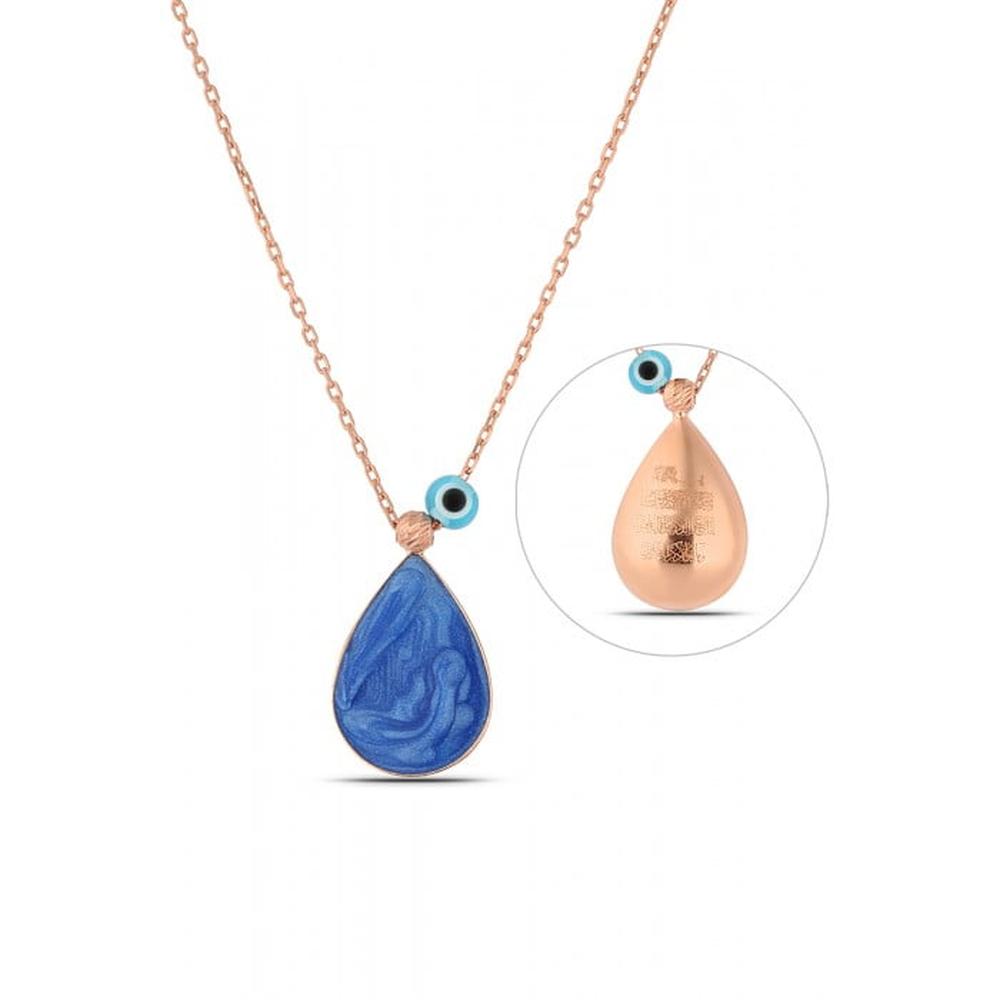 Home Halsketten für Damen Blaue Emaille Tropfen Halskette Dual Back Kein Gebet