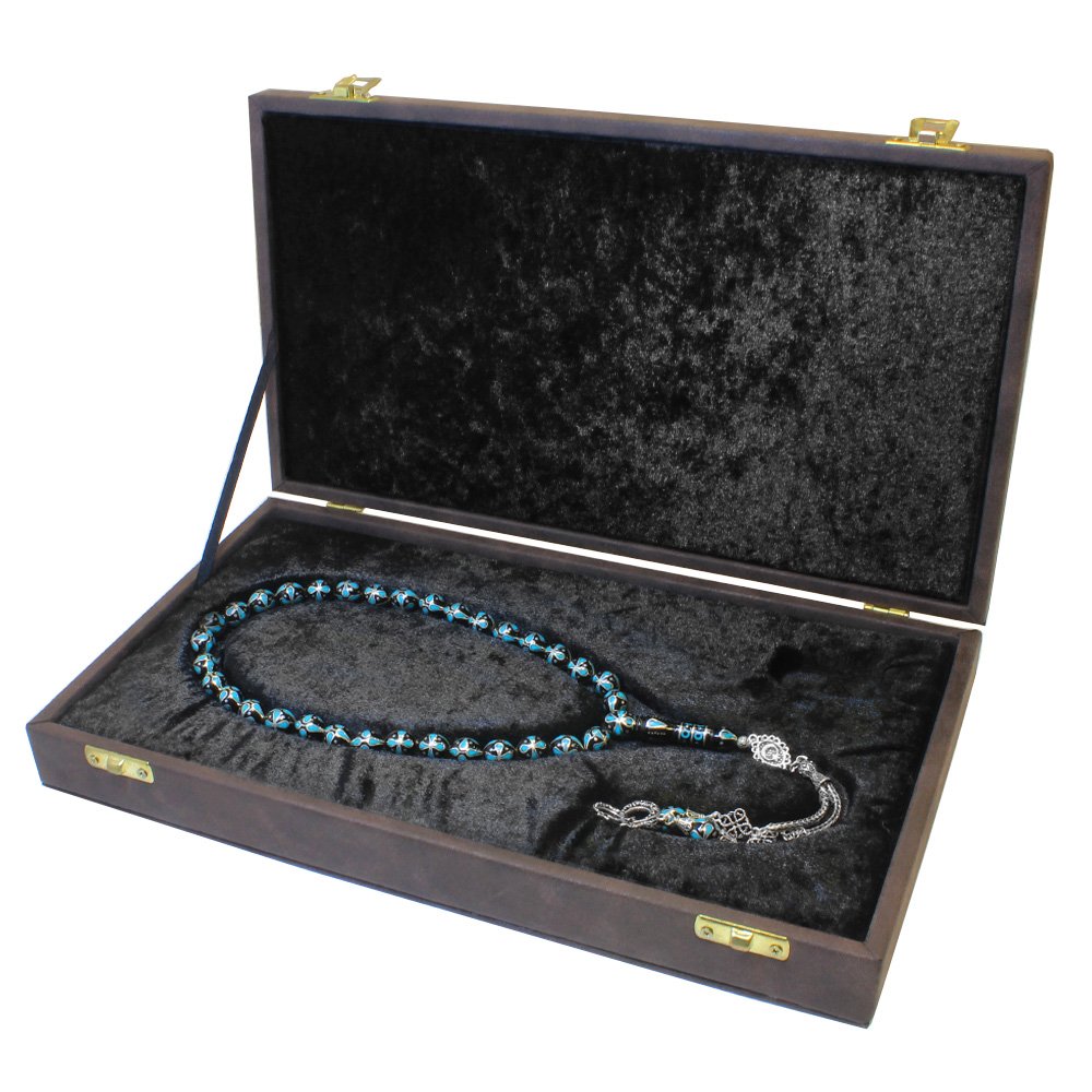 Home GESCHENKKASTEN Rosenkranzschachteln Braunes Nubukleder in samtgeschnitzter Avangarde-Sammel-Gebetsperlenbox