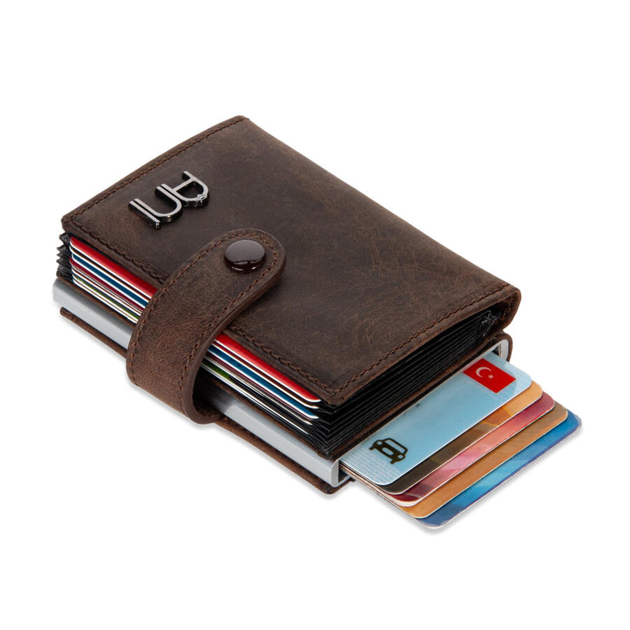 Produkteigenschaften: 100 % echtes Leder. Abmessungen: 7 cm * 9,5 cm. Rohlingstärke: 2,5 cm. Der mechanische Teil hat eine Kapazität von 5 Karten. Es gibt 1 äußeres Kartenfach. Im Akkordeonbereich befinden sich 12 interne Kartenfächer. Es wird von unserem erfahrenen Team sorgfältig in der Türkei hergestellt. Crazy-Leder verleiht aufgrund seiner Struktur einen gealterten/vintage-Look. Es gibt keinen Umtausch/Rückerstattung für personalisierte Produkte. Anı Ring ist Ihre zuverlässigste Wahl, wenn es um diesen stilvollen Kartenhalter für Herren geht, die ihren Stil in jedem Aspekt des Lebens widerspiegeln möchten.