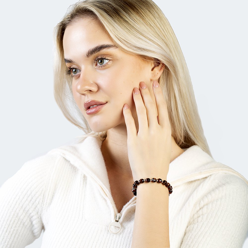 Damenarmband mit facettiertem Tigerauge und Naturstein