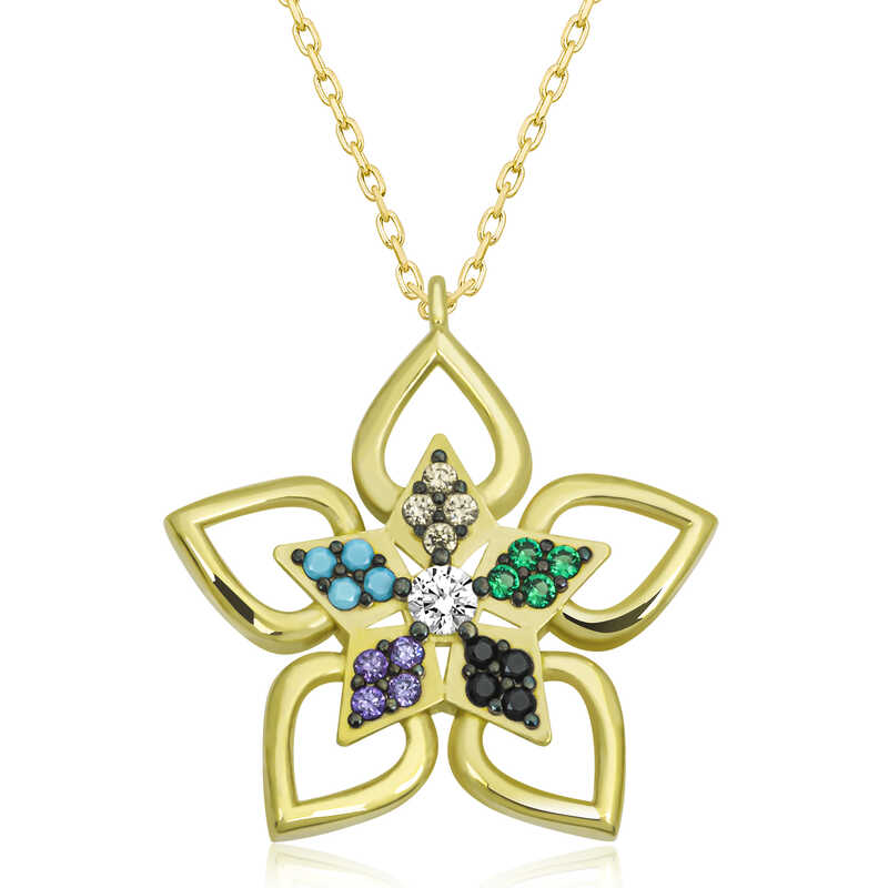 ​Damen-Halskette mit goldfarbenem Stein und Blumen in Silber. Die besondersste und eleganteste Art, Ihren Lieben Ihre Gefühle auszudrücken, ist mit stilvollen, farbenfrohen und duftenden Blumen, die Sie ihnen schicken können. Die Blume, die zu den Geschenken zu besonderen Anlässen gehört, wurde dieses Mal in einer anderen Interpretation gestaltet…  Die Blumenkette mit farbigen Steinen wartet auf diejenigen, die ihre Liebe noch einmal zum Ausdruck bringen möchten und auf diejenigen, die es wollen Sag „Du bist eine Blume“. Diese speziell entworfene Blumen-Damenhalskette besteht aus 925er Sterlingsilber. Vergoldet auf Silber. Vergoldete Damen-Halskettenmodelle aus Silber behalten lange ihren Glanz und ihre Oxidation wird verzögert. Die Steine ​​an der Halskette sind aus Zirkon. Wie alle Damen-Silberhalsketten-Modelle wird auch die Silber-Blumen-Damenhalskette von Hand gefertigt. Aufgrund von Silber und Edelsteinen kann es zu einer Abweichung von ± 10 % im angegebenen Produktgewicht kommen. Breite: 2,00 cm Länge: 2,20 cm Durchschn. Gewicht: 2,70 g. Kettenlänge: 45 cm