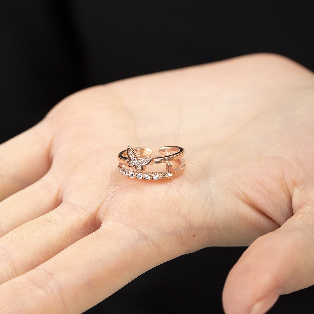 Home d-Ring Damenringe Trendringe Damenring aus 925er-Sterlingsilber mit weißem Zirkonstein und Schmetterling, detaillierter Rosenfarbe, freie Größe