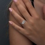 Silberner Damenring mit Baguettesteinen. Dieses stilvolle Ringmodell ist mit funkelnden Baguettesteinen verziert. Es ist eine sehr stilvolle Option, die Sie zu besonderen Anlässen als Geburtstagsgeschenk, Valentinstagsgeschenk oder Geschenk für Mütter wählen können. Der Damenring mit Baguettestein besteht aus 925er Sterlingsilber. Es ist auf Silber rhodiniert. Rhodinierte Silberringe behalten lange ihren Glanz und ihre Oxidation wird verzögert. Die Steine darauf sind Baguette und Zirkon. Wie alle Damenringe aus Silber wird auch das Damenringmodell Silber Baguettestein in Handarbeit gefertigt. Aufgrund von Silber und Edelsteinen kann es zu einer Abweichung von ± 10 % im angegebenen durchschnittlichen Produktgewicht kommen. Breite: 2,00 cm Länge: 2,10 cm Durchschn. Gewicht: 1,90 gr.