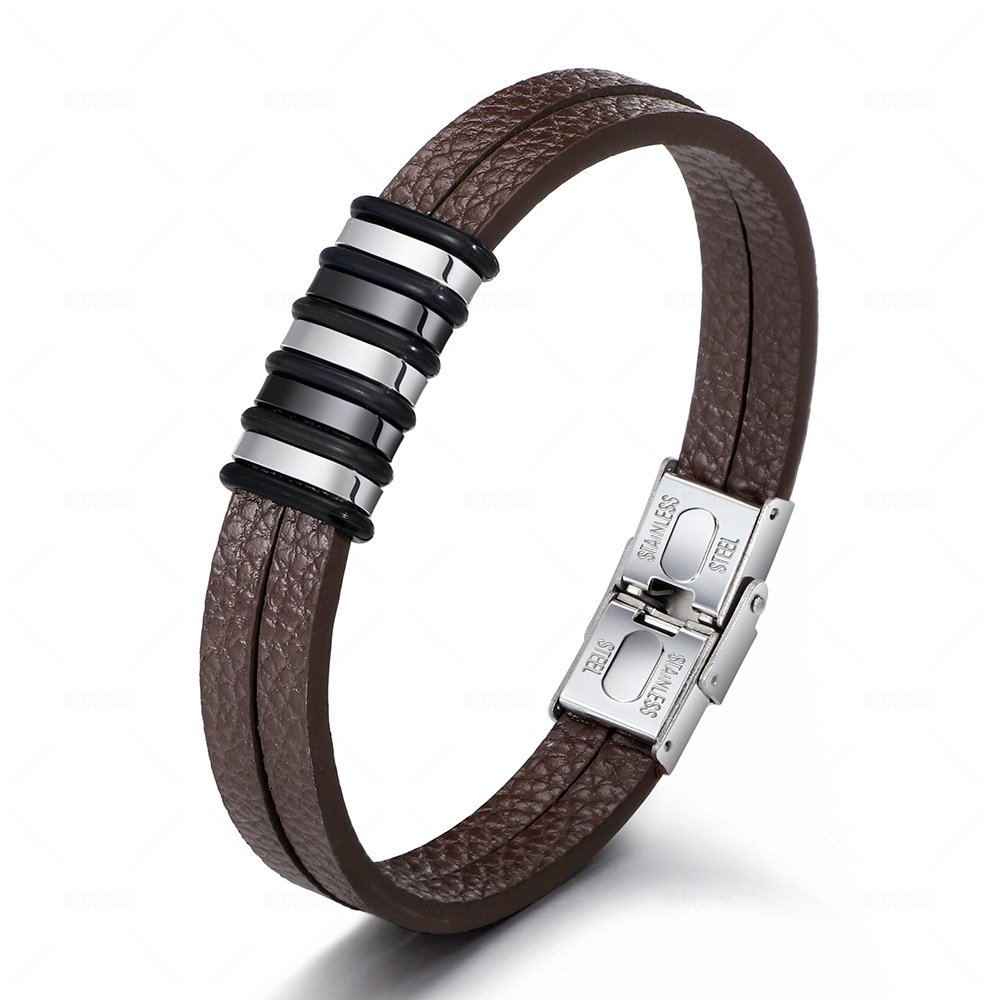 Home Herren Armband Doppellagiges Herrenarmband aus braunem Leder und hochwertigem 316L-Stahl