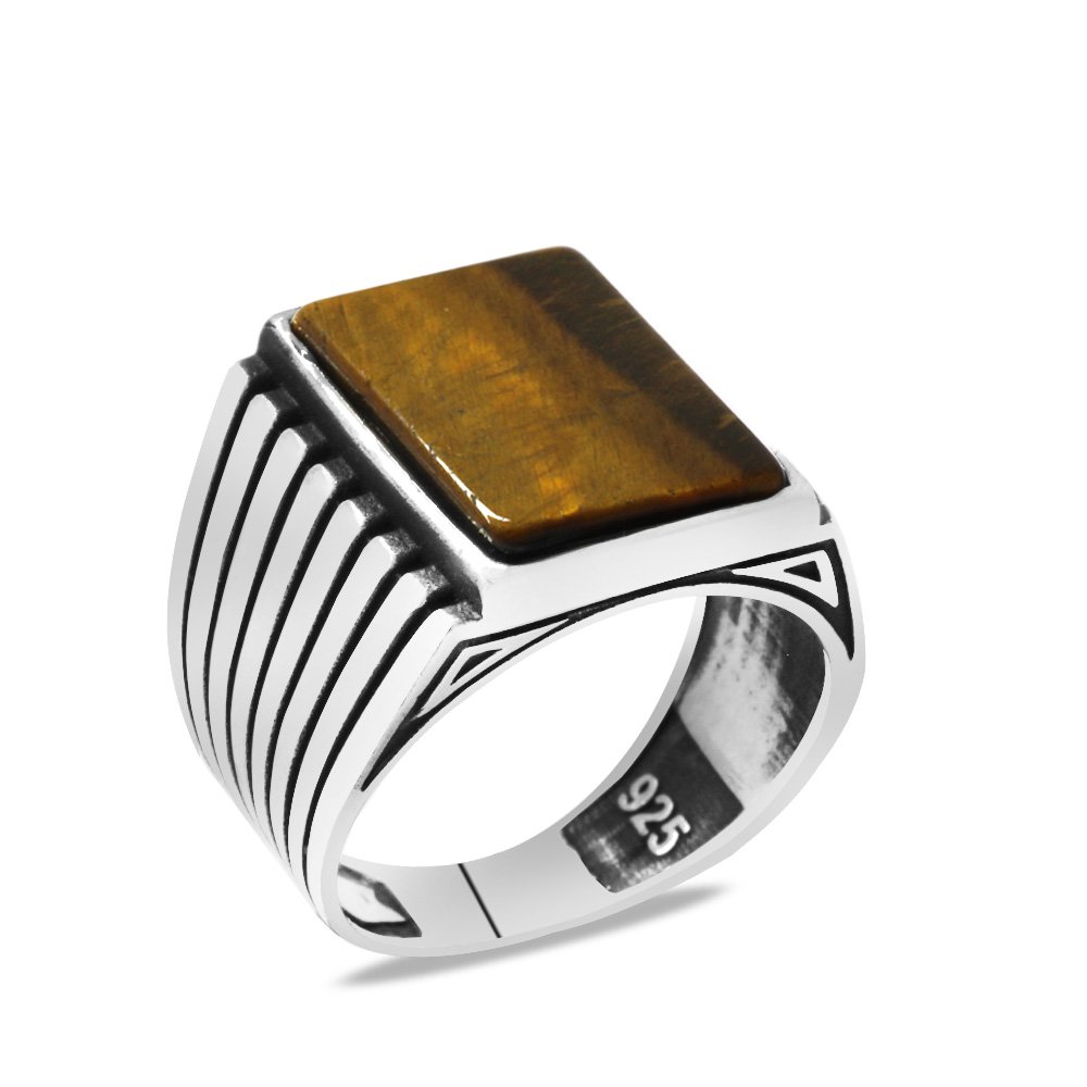 Home d-Ring Herrenringe Steinringe Elegance Design Herrenring aus 925er Sterlingsilber mit Tigerauge-Stein