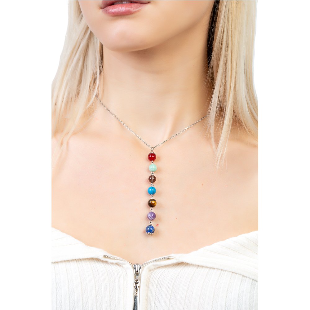 Erfolgshalskette für Damen mit anlaufgeschützter Metallkette, Kombination aus Chakra-Natursteinen
