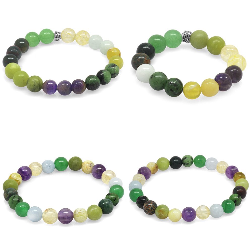 Familienheilungsarmband mit mehreren Natursteinkombinationen im Kugelschliff (4er-Set)