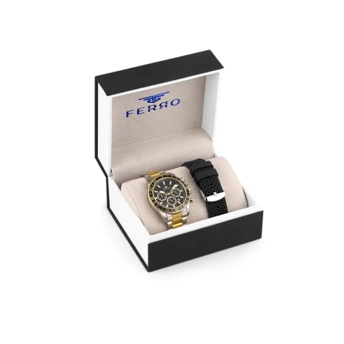 Mekanizma:AnalogKordon Rengi:Silver-BlackMarka:FerroSuya Dayanıklılığı:Su GeçirmezCamı:KristalKasa Materyali:ÇelikKordon Materyali:Çelik – Silikon Kargo