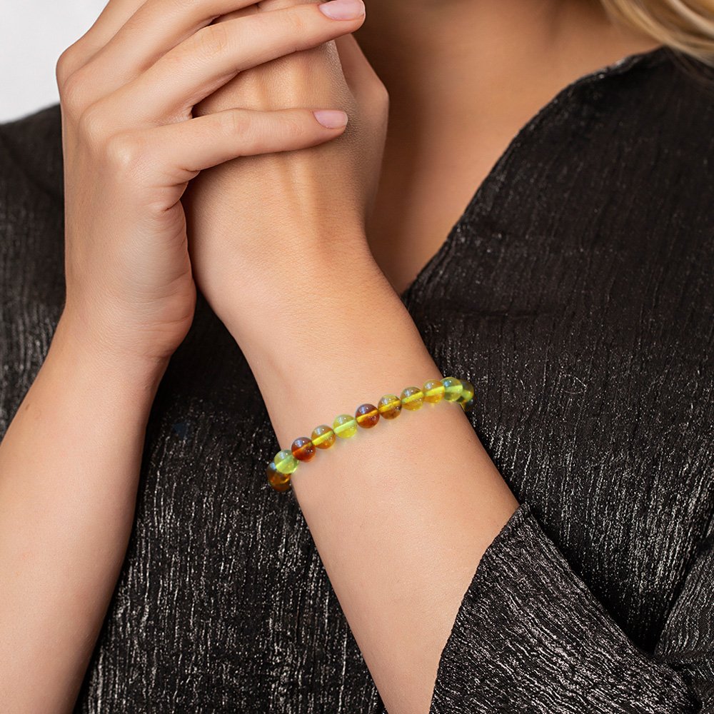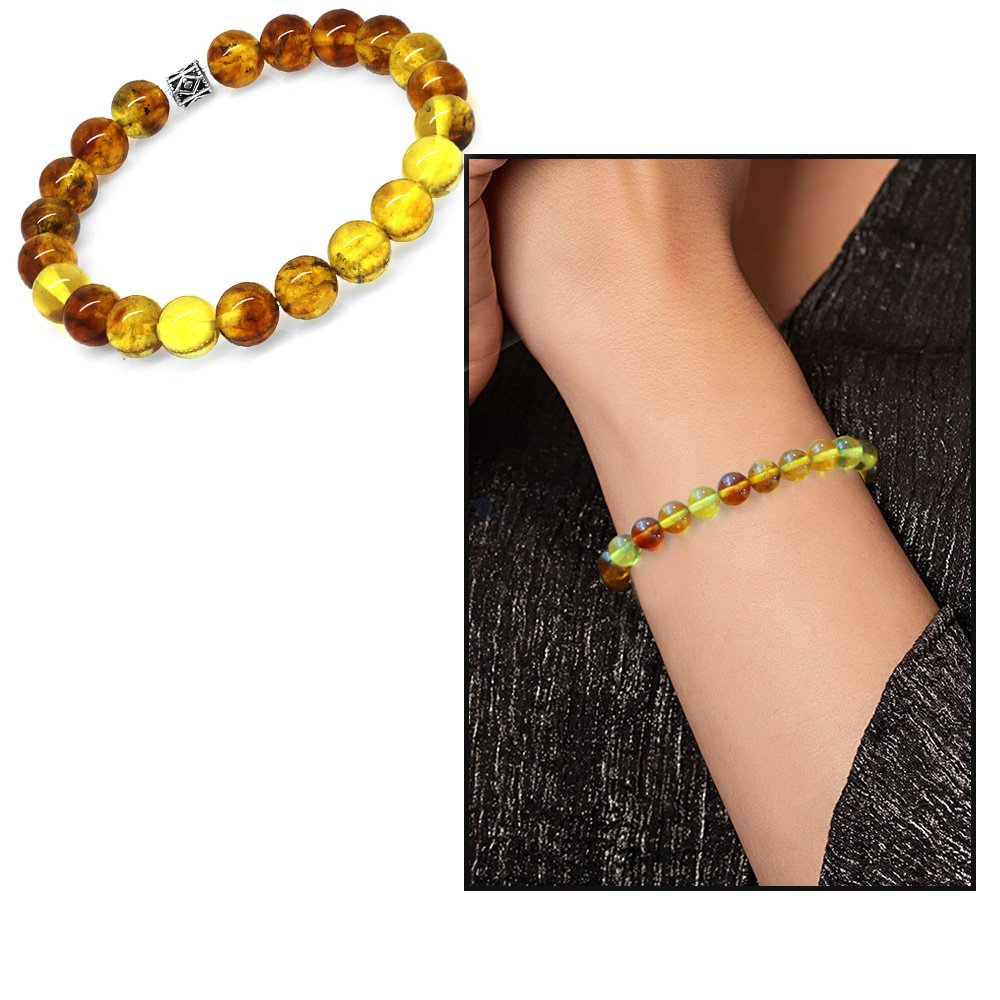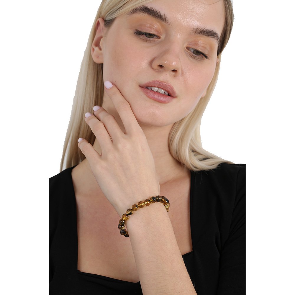 Fossiles Damen-Armband mit Kugelschliff, natürlicher gelber Tropfen-Bernstein
