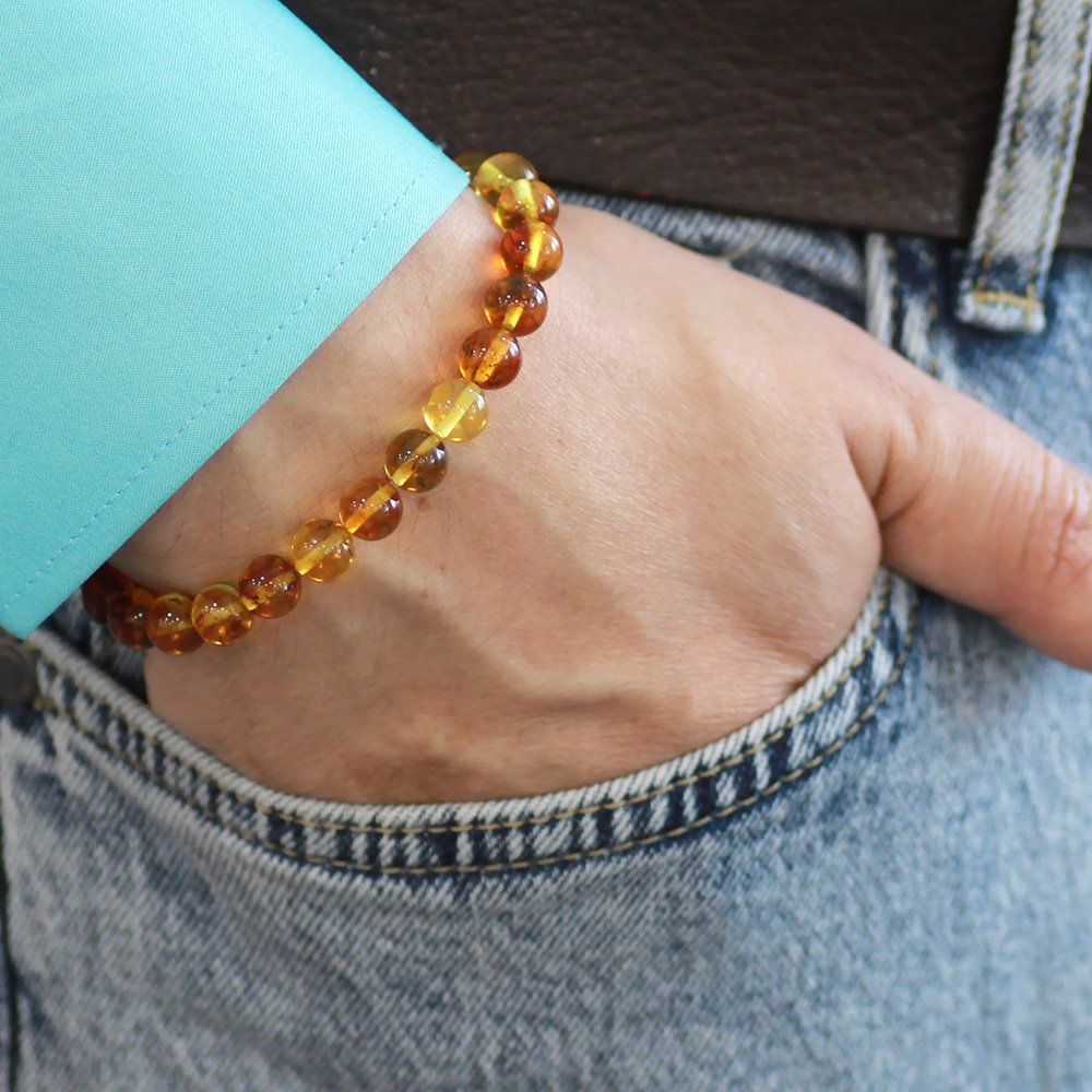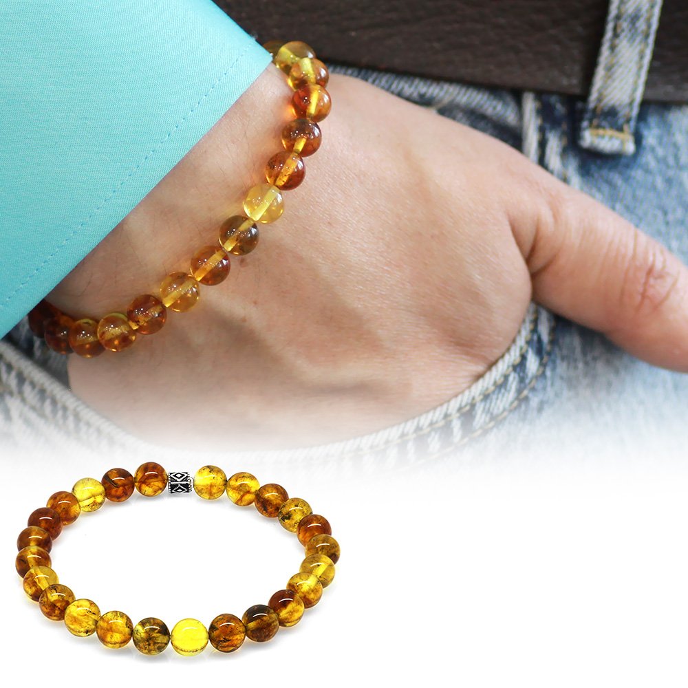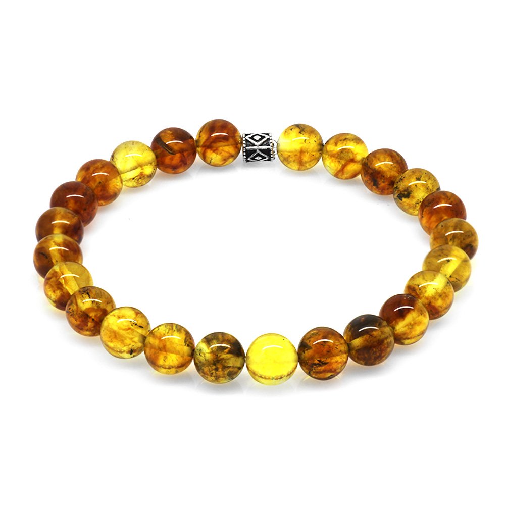 Home Herren Armband Fossiles Herrenarmband mit Kugelschliff, natürlicher gelber Tropfen-Bernstein