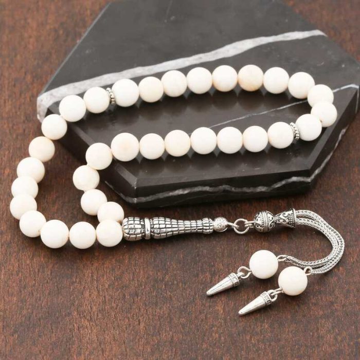 Gebetsperlen aus Naturstein-Perlmuttstein mit Metallquasten Perlmuttstein, der durch seine schillernde, funkelnde Schönheit und seine endlosen Vorteile Aufmerksamkeit erregt, wurde von der Vergangenheit bis zur Gegenwart häufig in Accessoires und Ornamenten verwendet. Sie können auch für sich und Ihre Lieben Zubehörmodelle aus Perlmuttstein wählen und von deren Vorteilen profitieren. Perlmutt ist ein Stein, der sich sehr positiv auf die körperliche und geistige Gesundheit der Menschen auswirkt. Aus diesem Grund können Sie von diesen Vorteilen profitieren, indem Sie darauf achten, dass die von Ihnen gewählten Accessoires auch Perlmuttstein enthalten. Seien Sie stilvoll und profitieren Sie von den positiven Auswirkungen auf Ihre Gesundheit mit umwerfenden Perlmutt-Halskettendesigns, die in Elmas İş-Qualität entworfen und hergestellt werden. Dieser kostbare Stein; Es ist eine perfekte Option für Geburtstagsgeschenke, den Vatertag oder besondere Anlässe. Der Rosenkranz wird von Hand gefertigt. Aufgrund von Silber und Edelsteinen kann es zu einer Abweichung von ± 10 % im angegebenen Produktgewicht kommen. Länge: 25,50 cm Korngröße: 0,90 cm Durchschnittsgewicht: 36,50 gr