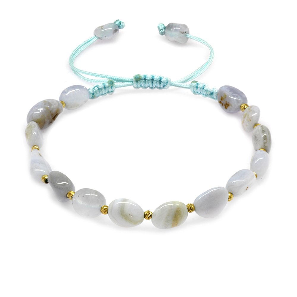 Home Fußkette-Armreif Geflochtenes Makramee-Damenarmband aus natürlichem Chalcedon-Naturstein