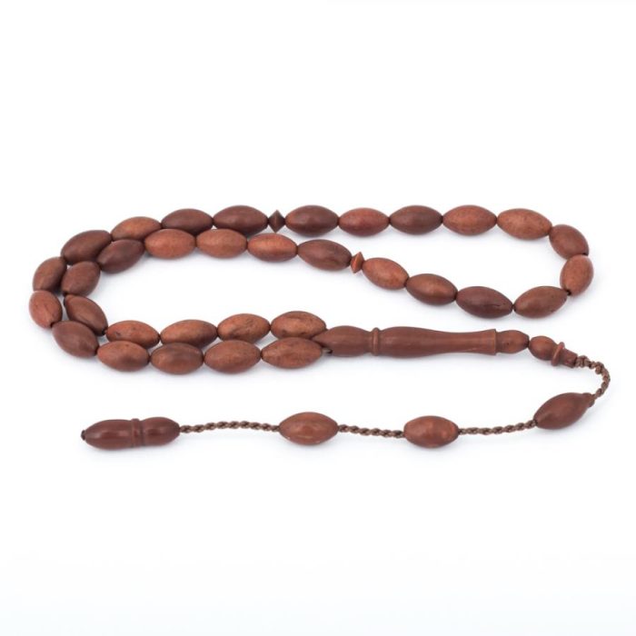 Kuka-Gebetsperlen aus Gerstenholz mit Imame-Länge: 18 Imame-Höhe: 3,5 cm. Korngröße: 11X9 mm. Gesamtlänge: 28 cm. Kuka Kuka hat eine rutschige und glatte Struktur. Aus diesem Grund dunkelt die Farbe bei Berührung mit den Händen nach kurzer Zeit nach. Zudem sind Gebetsperlen aus Kegeln sehr leicht und resistent gegen allerlei äußere Einflüsse. Darüber hinaus wirken sich auch die antimikrobiellen Eigenschaften des Materials bei der Auswahl dieser Gebetsperlen aus.