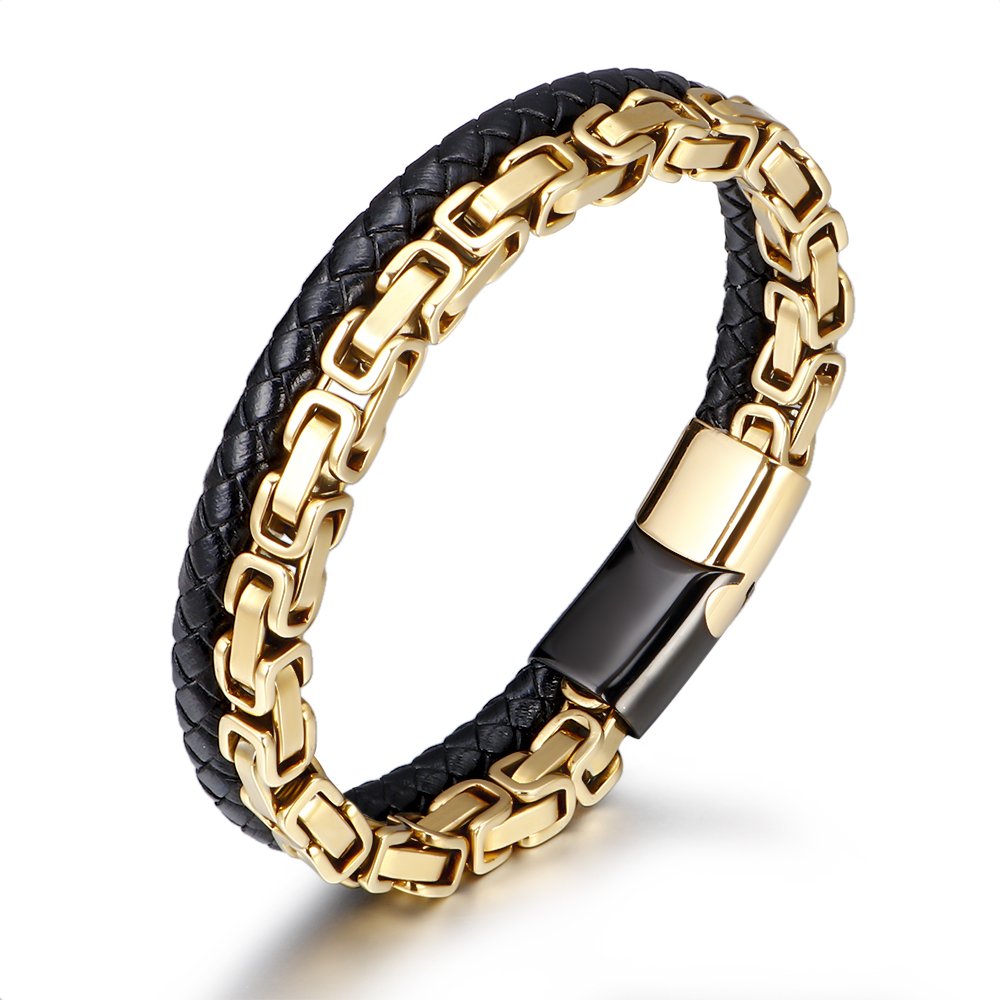 Goldfarbene Königskette und geflochtenes Echtleder-Kombinations-Magnetschnalle-Mechanismus aus 316L-Qualitätsstahl für Herren