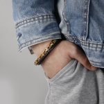 Wicker Design Kuka besticktes Herrenarmband aus schwarzer Stahl-Leder-Kombination