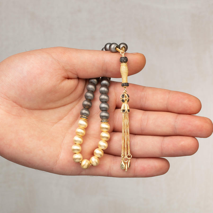 Goldgraue mattsilberne Gebetsperlen ProduktmerkmaleGesamtlänge: 21 cmGewicht: 37,2 gKörnung: 8 x 8 mmQuastenlänge: 9 cmFür die Quastenverarbeitung wurde Zirkonstein verwendet. Schauen Sie sich den matten Rosenkranz genauer an, der komplett in Silber gefertigt ist und in seiner Verarbeitung Gold- und Grautöne im Sandstrahlverfahren verwendet! Wenn Sie auf der Suche nach einer besonderen Gebetskette sind, die Ihre Eleganz ergänzt, kann Ihnen dieses Modell weiterhelfen. Die Gesamtlänge dieses Rosenkranzes beträgt 21 cm und sein Silbergewicht beträgt 37,2 Gramm. Die Quaste ist in Goldfarbe gestaltet und mit Zirkonsteinen verziert. Die Länge der Quaste betrug 9 cm. Bestellen Sie jetzt und erhalten Sie ein stilvolles Accessoire mit kostenlosem Versand. Vorteile von Silber Es ist die erste bekannte antibiotische Substanz. Es hat antimikrobielle Eigenschaften. Es schützt vor Strahlung. Es reduziert Elektrizität und beugt Stress vor. Es ist bekannt dafür, dass es bei Krankheiten wie Diabetes, Schuppenflechte und Juckreiz hilft. Klicken Sie hier, um zum Blogbeitrag mit dem Titel „5 unbekannte Vorteile des Silberelements“ zu gelangen