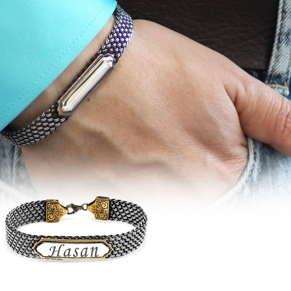 Home PERSONALISIERTES PRODUKT Personalisiertes Produkt für Herren Personalisiertes Herrenarmband Handgefertigtes Herrenarmband aus 925er Sterlingsilber mit geflochtenem Design und personalisiertem Namen