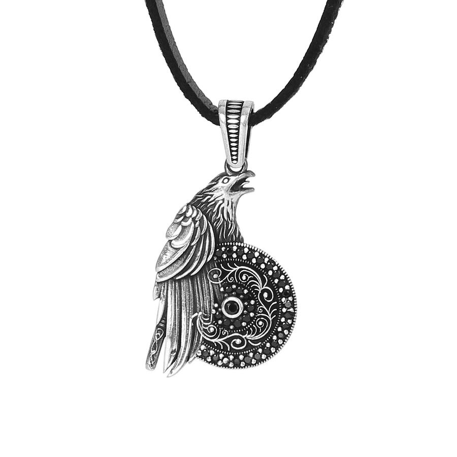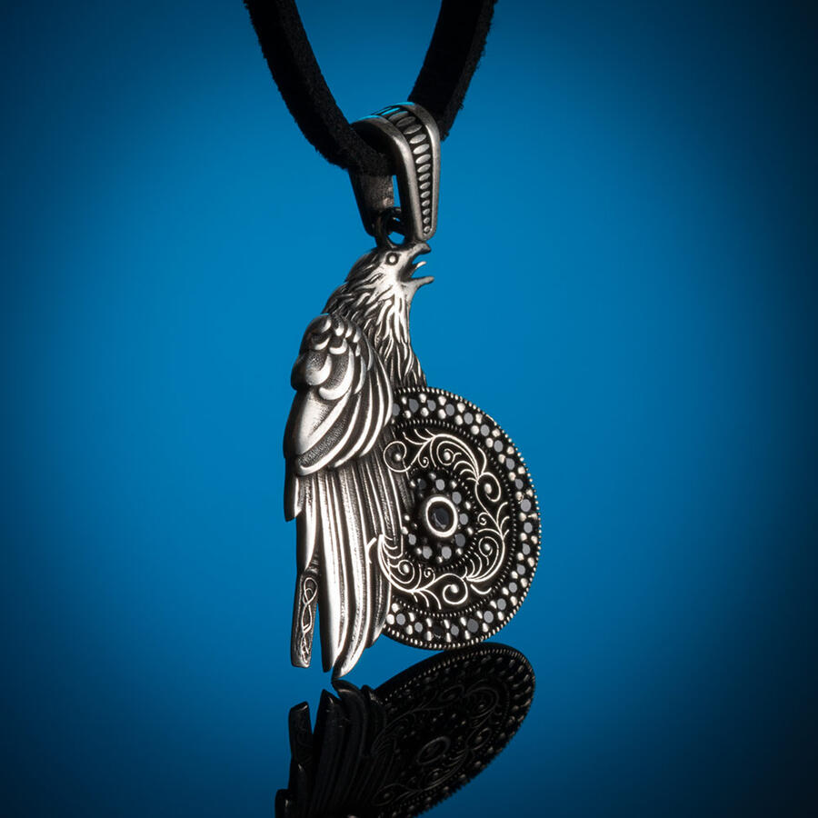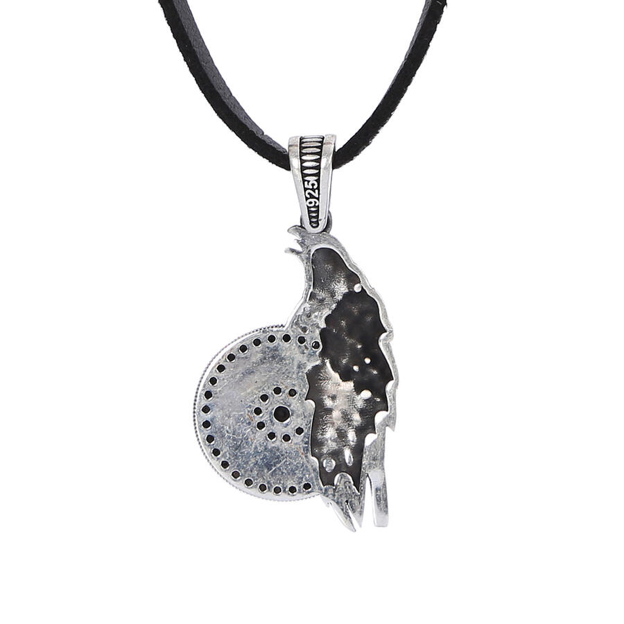 925 Sterling Silber Herren-Halskette mit kleinem, mit Steinen besticktem Adler und Lederband. Produktmerkmale: Der Anhänger ist aus 925er Sterlingsilber gefertigt. Der Versand erfolgt mit einem 50 cm langen Lederseil. Der Anhänger wiegt ca. 6,30 Gramm.