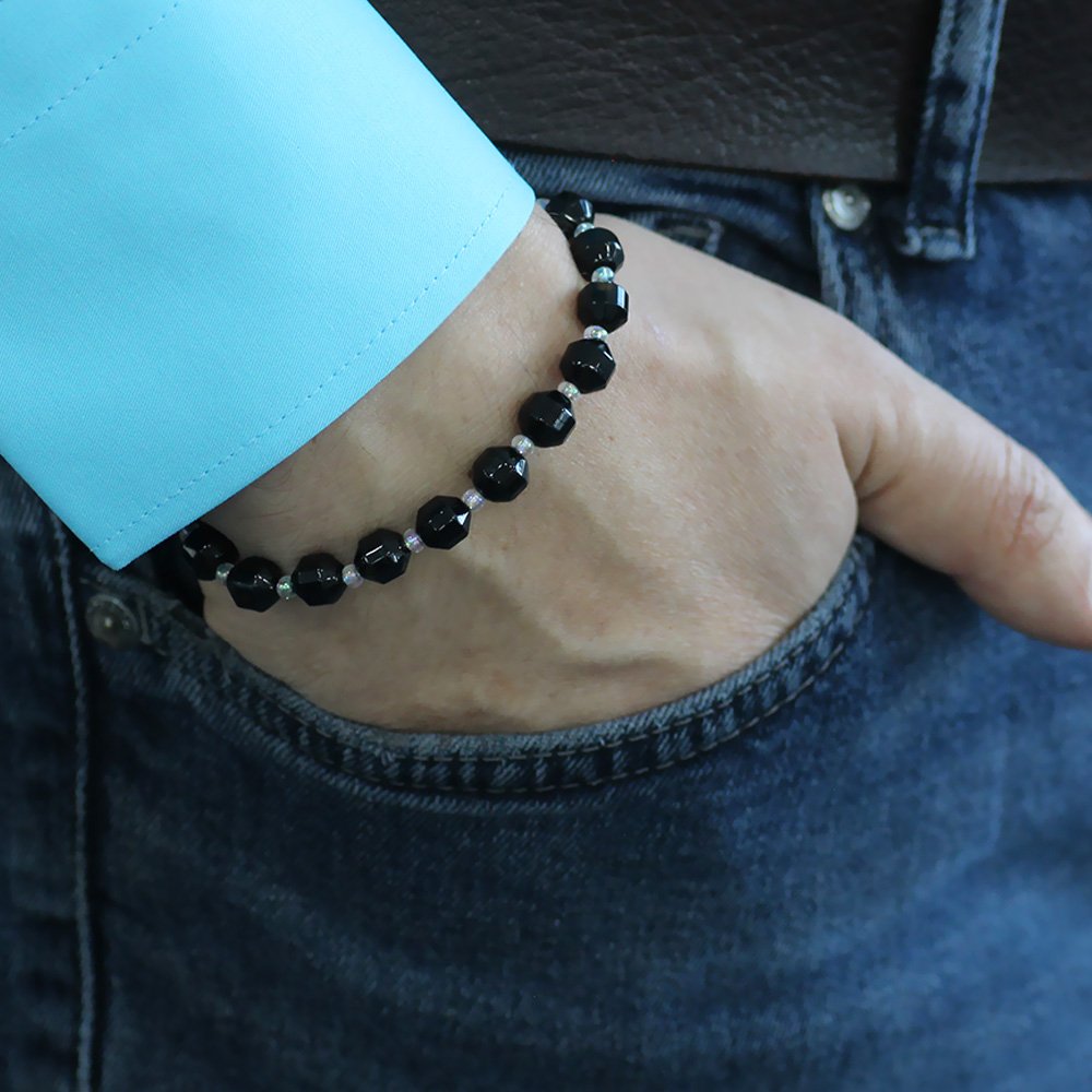 Hergestellt: Naturstein. Verwendeter Stein: Onyx. Farbe: Schwarz. Gewicht: 12,35 g. Länge: Elastisch. Vorbereitungszeit: 1 Werktag. Produktverpackung. Ihr Produkt wird mit einer Schutzverpackung mit Ihrem Logo versendet. Für spezielle Geschenkbox-Optionen können Sie sich unsere Kategorie „Geschenkbox“ im Menü ansehen. Beschreibung des Natursteins Onyx: Er gehört zur schwarzen Farbgruppe unter den Heilsteinen. Es ist sehr effektiv bei positivem Denken. Es sorgt für Konzentration. Es gleicht die Beziehungen zwischen Mann und Frau aus und stärkt sie. Es ist wirksam gegen schlimme Ängste. Es beseitigt auch die Angst vor der Zukunft. Es hilft der Person, Süchte loszuwerden. Es wird gegen den bösen Blick eingesetzt. Es unterstützt den Menschen mit seiner Energie. Er wird auch als Stein des Glücks bezeichnet. Es schützt Menschen vor zu starken Emotionen und verringert das Risiko, Fehler zu machen.