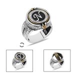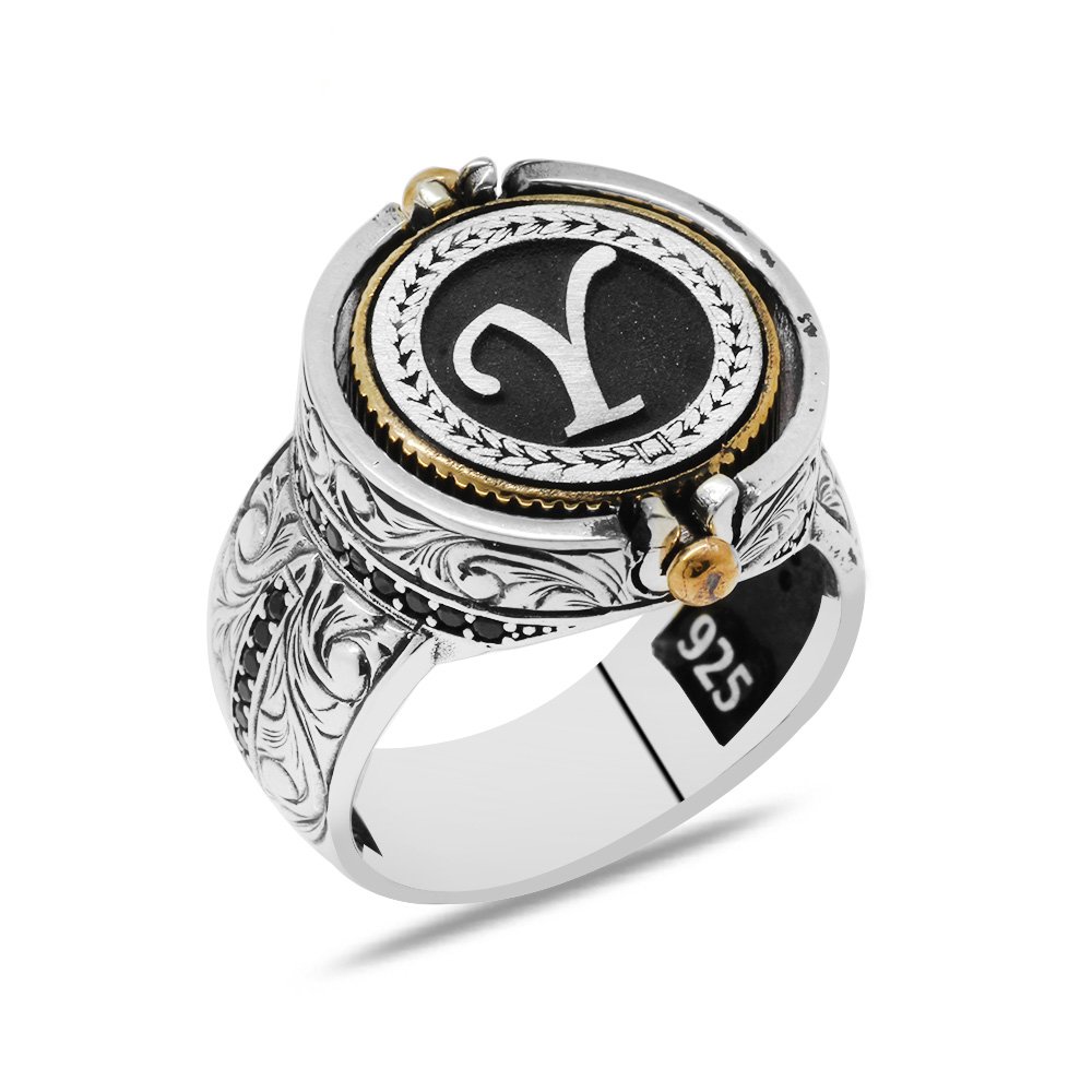 Herrenring aus 925er Sterlingsilber mit Bleistiftarbeit und doppelseitigen personalisierten Buchstaben