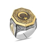 Home d-Ring Herrenringe Avangarde-Ringe Herrenring aus 925er Sterlingsilber mit Tughra-Detail und Stern- und Halbmondmotiv