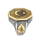 Herrenring aus 925er Sterlingsilber mit Tughra-Detail und Stern- und Halbmondmotiv