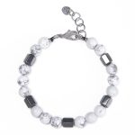 Home ARMBAND Damenarmbänder Damenarmbänder aus Naturstein Howlith- und Hämatit-Kombination, längenverstellbares Naturstein-Damenarmband