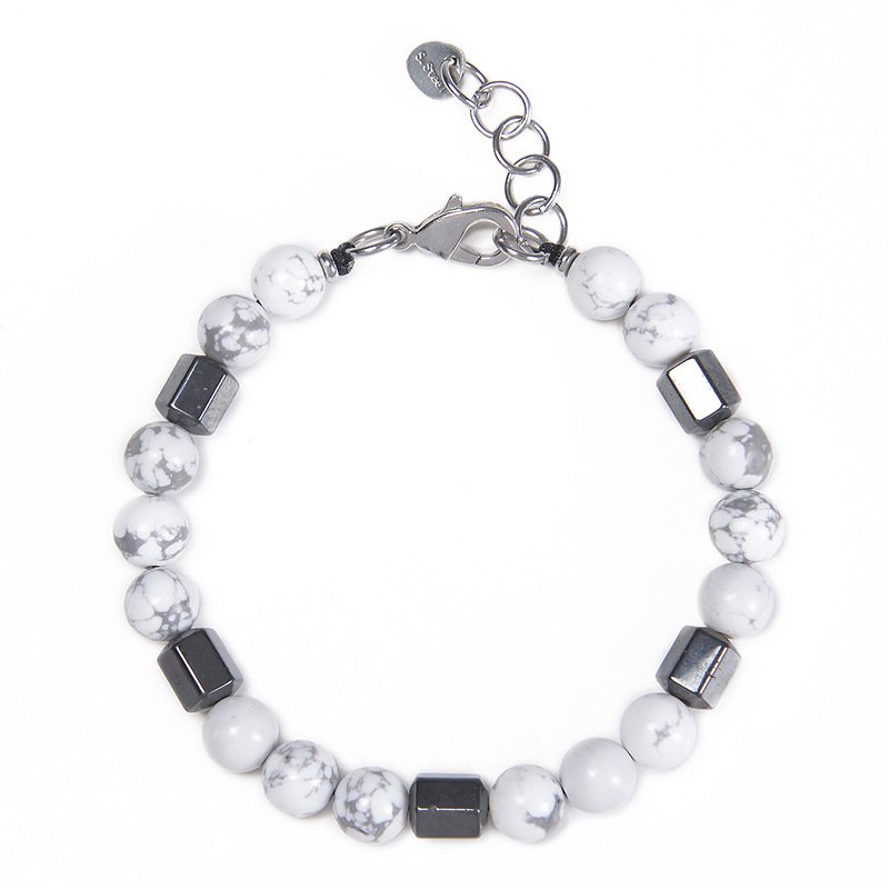 Home ARMBAND Herrenarmbänder Herrenarmbänder aus Naturstein Howlith- und Hämatit-Kombination, längenverstellbares Naturstein-Herrenarmband
