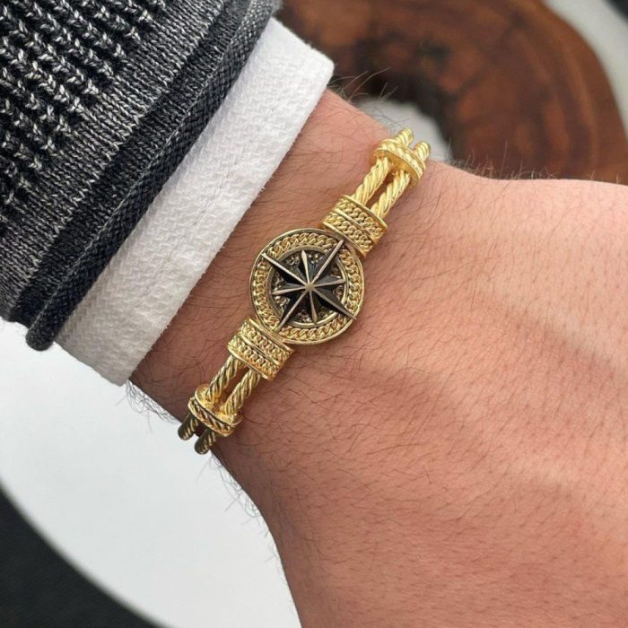 Kompass dargestellt Zirkon Stein Goldfarbe Herren Armband