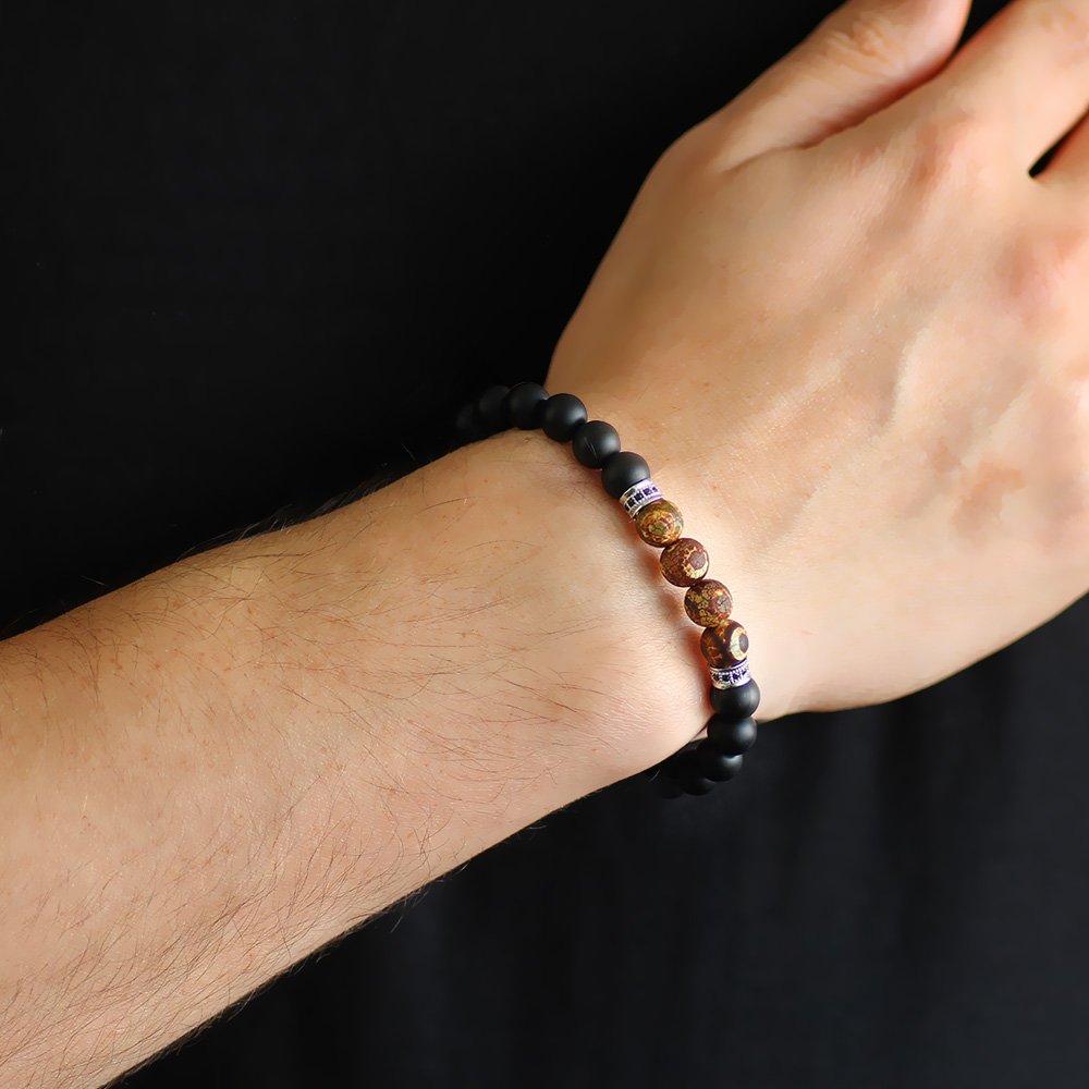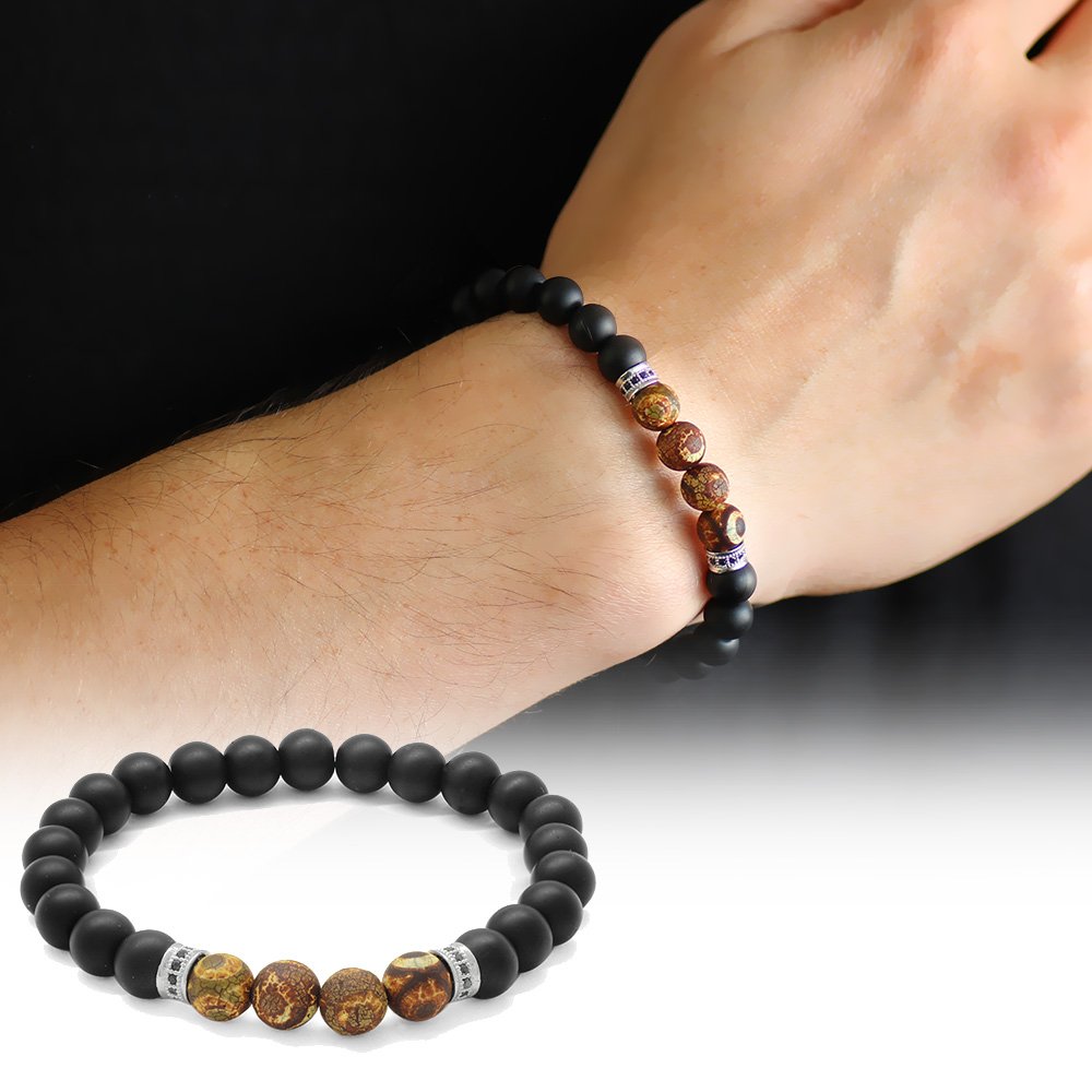 Kugelschliff Onyx-Tibet-Achat-Kombination Herren-Natursteinarmband