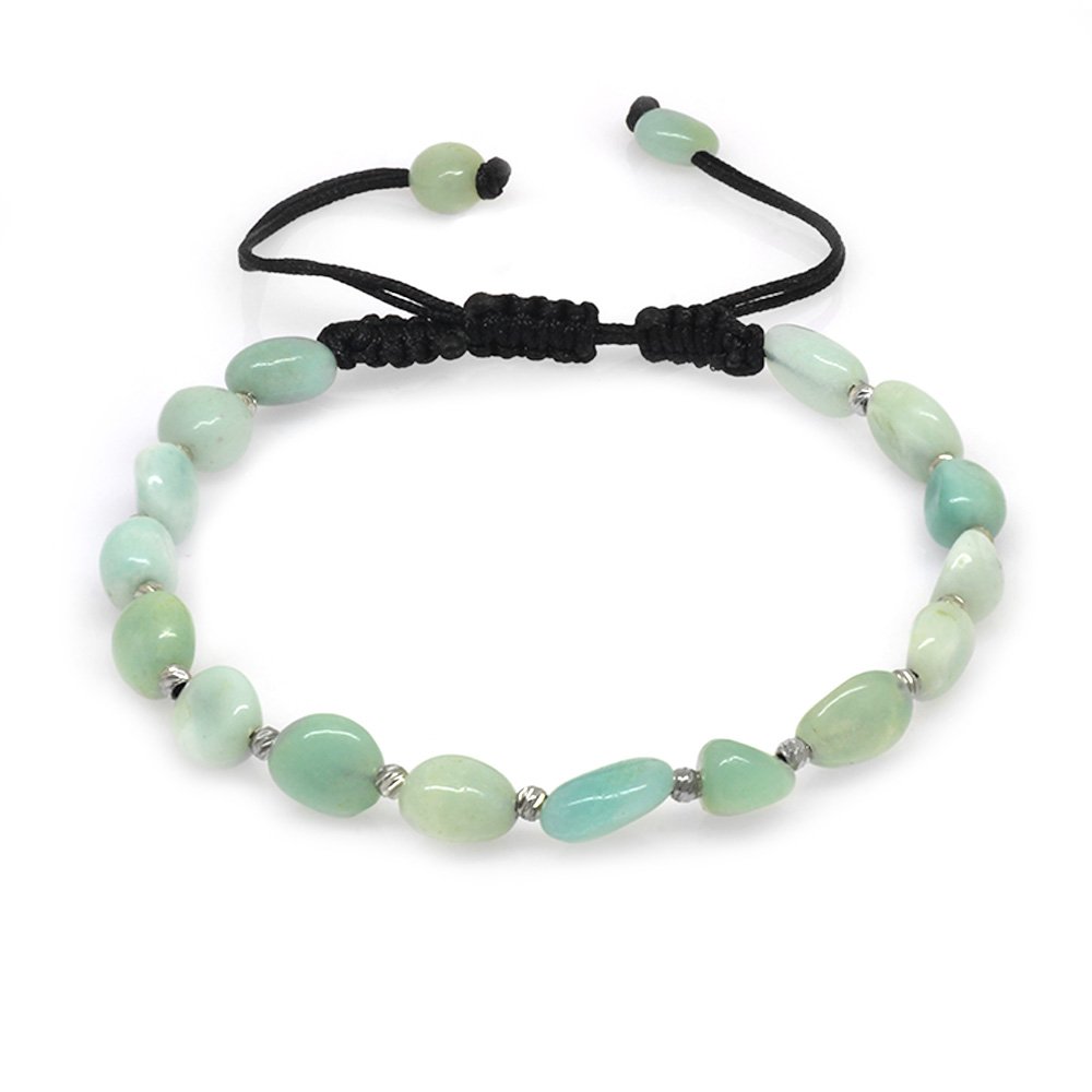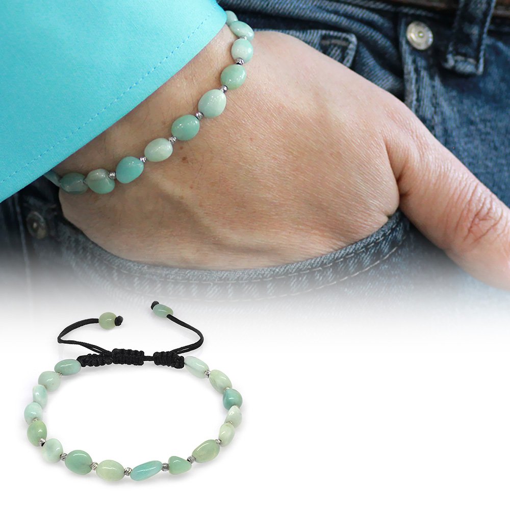 Hergestellt: Naturstein. Verwendeter Stein: Amazonit. Farbe: Grün. Gewicht: 7,40 g. Länge: Makramee – anpassbar. Vorbereitungszeit: 1 Werktag. Produktbox. Ihr Produkt wird mit einer Schutzbox mit Ihrem Logo versendet. Spezielle Optionen für Geschenkboxen finden Sie in der Kategorie „Geschenkbox“ im Menü. Beschreibung des Natursteins Amazonit: Der Name stammt vom Amazonas. Der Grund dafür ist, dass er seine Form und Farbe von diesem Fluss hat. Es wird zur Schmuckherstellung oder zu dekorativen Zwecken verwendet. Es ist entspannend, beruhigend und friedlich. Es erhöht die Fähigkeit einer Person, sich selbst auszudrücken. Der Amazonitstein, der mit dem Herzen, den Muskeln und dem Nervensystem in Verbindung steht, verleiht dem Leben eines Menschen einen Sinn und erleichtert die Akzeptanz von Veränderungen. Es ist gut gegen Kalziummangel und beugt Karies vor. Es erhöht die geistige Leistungsfähigkeit und stärkt das Verständnis und die Auffassungsgabe. Es beschleunigt die Heilung emotionaler Wunden. Es hilft auch, die Kommunikation zu verbessern.