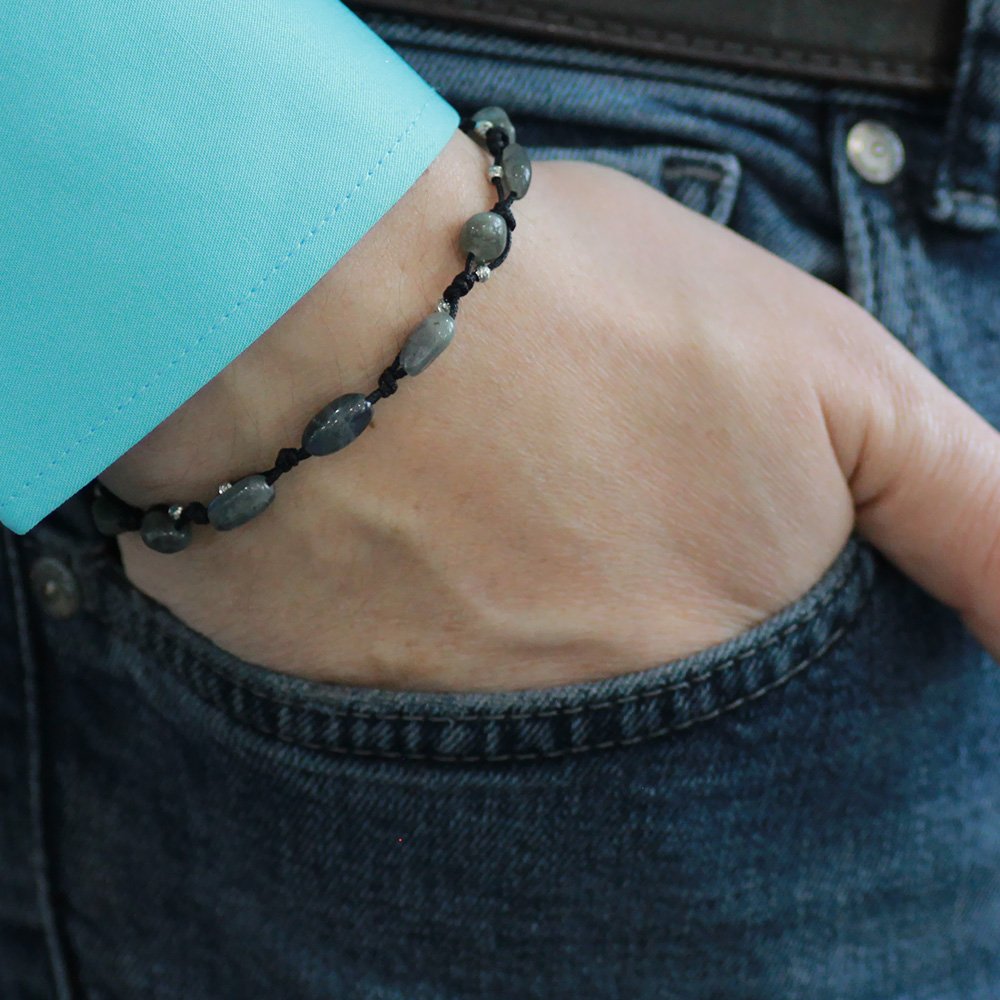 Home Herren Armband Makramee-Armband aus geflochtenem Dorica-Kugel im Naturschliff, detailliertes Labradorit-Naturstein-Herrenarmband