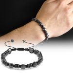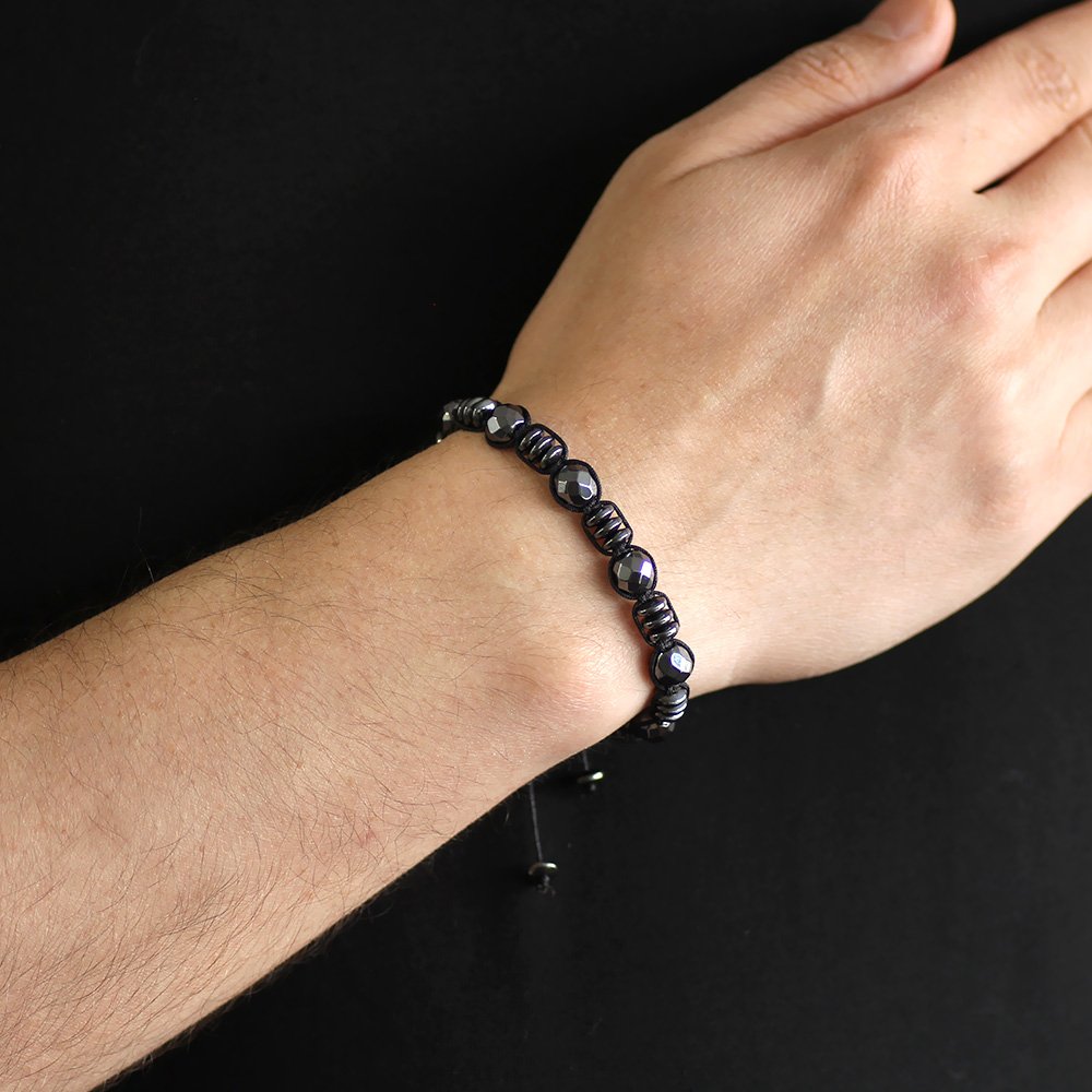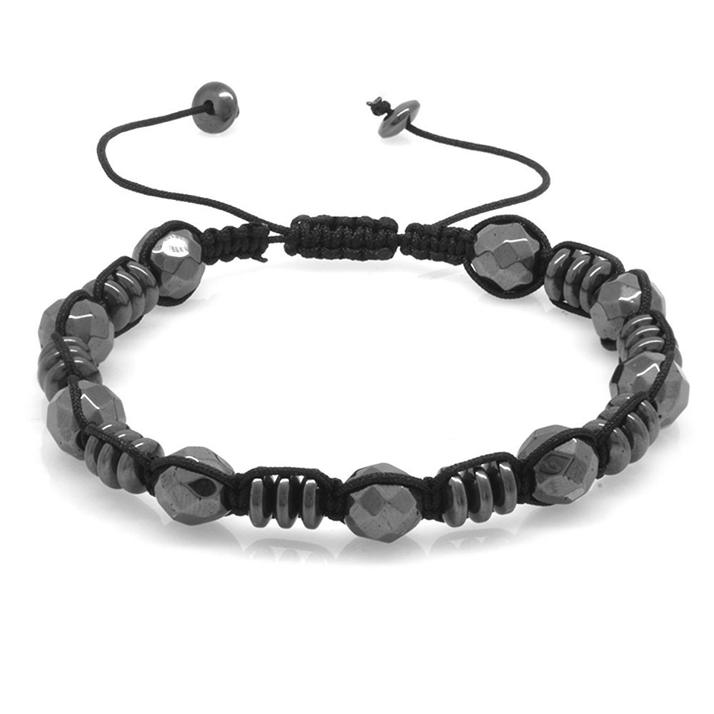 Home Herren Armband Makramee-Armband aus geflochtenem Hämatit-Naturstein mit Unterlegscheibe und Kugelschliff