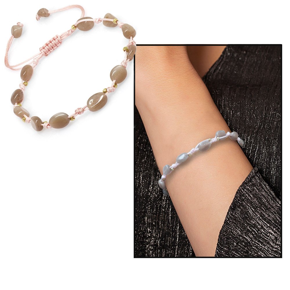 Makramee-Armband aus geflochtenem Naturschliff mit Dorica-Kugel, detailliertem Sonnenstein und Naturstein für Damen