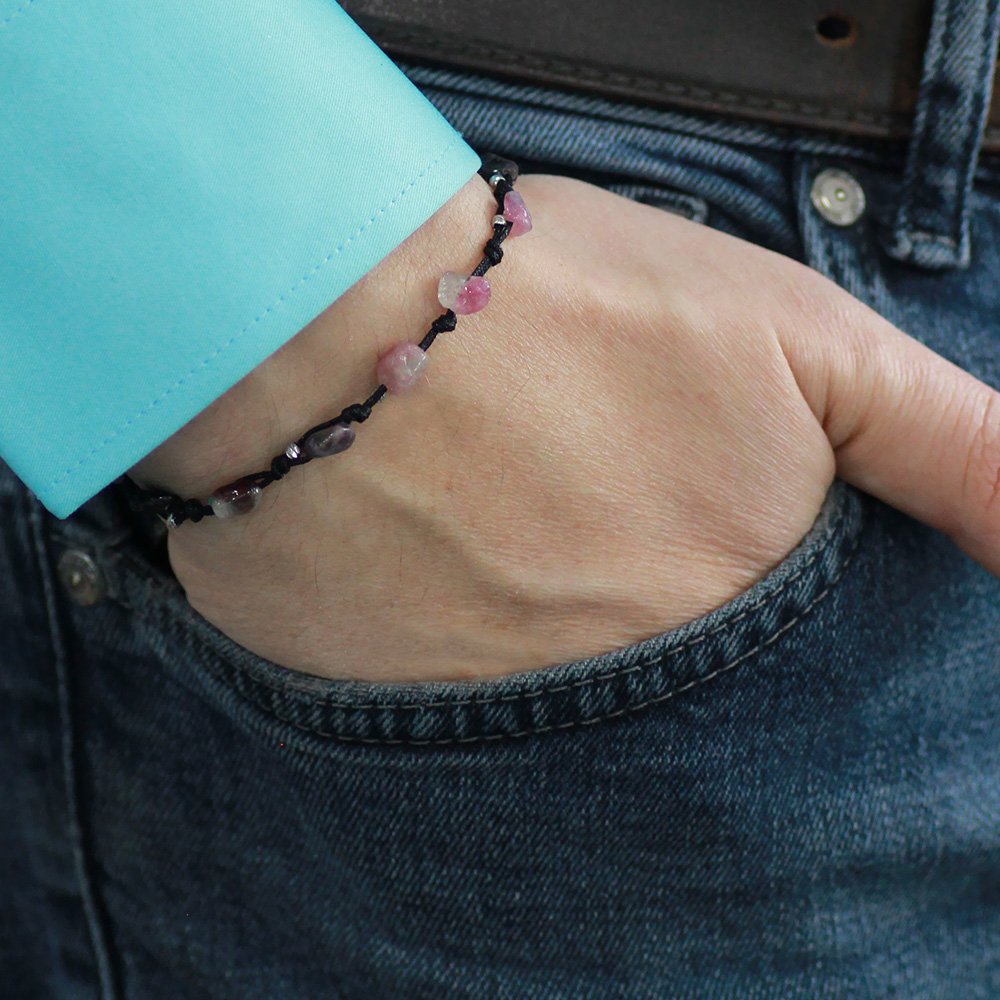 Home Herren Armband Makramee-Armband aus geflochtenem Naturschliff mit Dorica-Kugel, detailliertem Turmalin-Naturstein-Herrenarmband