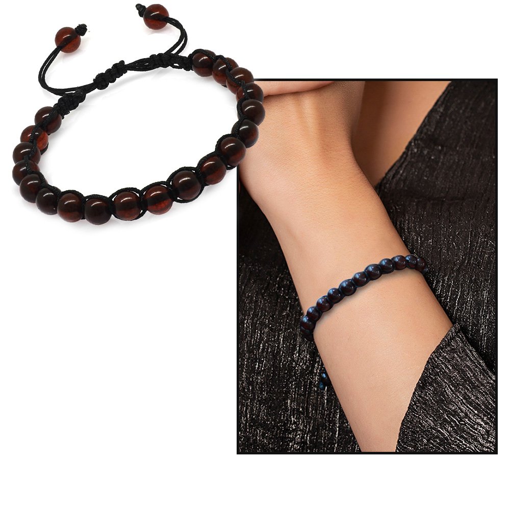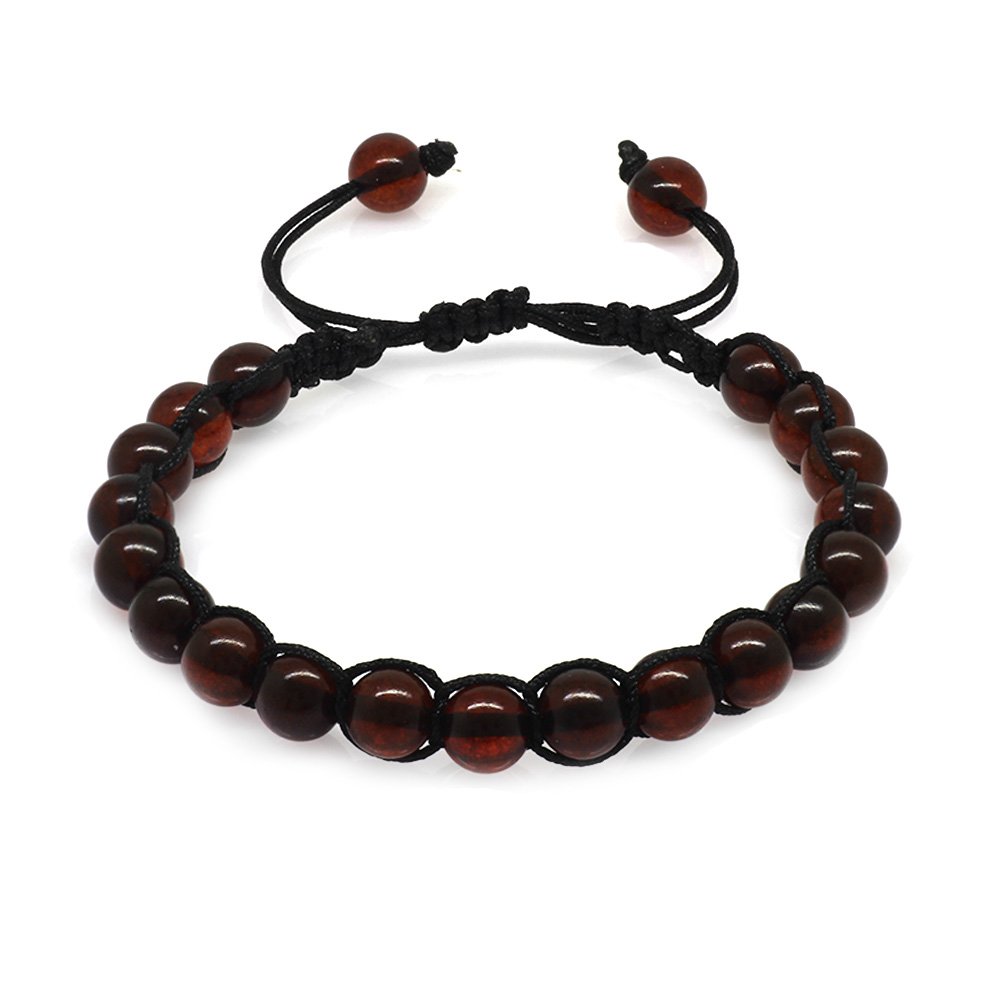 Makramee-Armband mit geflochtenem Globusschliff, rotem, natürlichem Tropfen-Bernstein für Damen