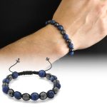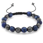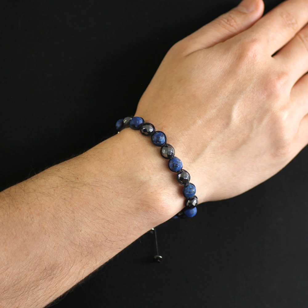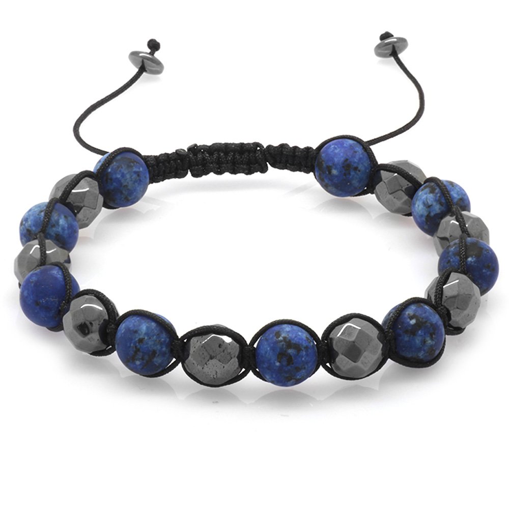 Home Herren Armband Makramee-Armband mit geflochtenem Kugelschliff, matt, marineblau, Edelstein-facettierte Hämatit-Kombination aus Natursteinen