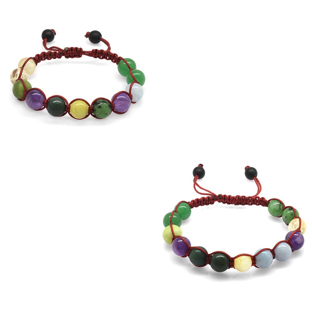Hergestellt: Naturstein Verwendete Steine: Amethyst-Anyolit-Aquamarin-Aventurin-Blut-Citrin-Opal-Jade Farbe: Mischung Länge: Makramee Vorbereitungszeit: 1 Werktag Produktverpackung Ihr Produkt wird mit einer Schutzverpackung mit Ihrem Logo versendet . Spezielle Optionen für Geschenkboxen finden Sie in der Kategorie „Geschenkbox“ im Menü. Beschreibung des Natursteins Amethyst: Er wird seit Jahrhunderten in vielen Zivilisationen mit Bewunderung verwendet. Es ist auch der stärkste Stein in Bezug auf die Heilung. Da es eine negative elektrische Ladung trägt, erhöht es die Gehirnleistung, indem es überschüssige Elektrizität im Körper sammelt. Es reicht aus, irgendwo in Ihrer Umgebung zu stehen, um negative Energien zu zerstören und in positive Energie umzuwandeln. Es ist gut gegen Schlaflosigkeit. Da es sich um einen Stein handelt, den Sie immer bei sich tragen können, versorgt er Sie stets mit Nutzen und Energie. Es gibt Energie. Anyolith: Es reguliert den Körper, stärkt ihn und gibt Energie. Es lindert Faulheit und Lethargie des Menschen und wirkt gegen chronische Müdigkeit. Beruhigt, reduziert Stress und Reizbarkeit. Es aktiviert und stärkt die Nebennieren und Lymphknoten. Es gleicht die Blutgerinnung aus. Es reinigt und erneuert das Blut. Es ist gut bei Augenkrankheiten und stärkt die Augen. Aquamarin: Es ist einer der wertvollsten Steine. Die wichtigsten Merkmale, die seinen Wert steigern, sind der Grad der Transparenz, die Dunkelheit seiner Farbe und die Sauberkeit des Innenraums. Es steigert Ihr Selbstvertrauen. Es ist gut bei Halsschmerzen, Bronchitis, Atemwegserkrankungen und Schilddrüsenerkrankungen. Es ist wirksam bei der Behandlung psychischer Erkrankungen. Es stärkt die Intuition. Der Aquamarinstein, auch Stein des Überflusses und des Glücks genannt, ist auch der Feind von Stress und Anspannung. Wenn Sie eine extrem wütende, angespannte und gereizte Person sind, wird es Ihnen helfen, in einen friedvolleren Zustand zu gelangen. Aventurin: Dieser Stein, der metallisches Funkeln ausstrahlt, hat eine körnige Struktur. Er ist als Stein des Glücks bekannt. Es wirkt emotional ausgleichend und wirkt auch gegen Depressionen. Sie können es nutzen, um sich glücklich zu fühlen. Es ist besonders vorteilhaft für die Herzgesundheit. Wenn es in der Nähe des Herzens platziert wird, schützt es Sie vor der Negativität anderer Menschen. Es ermöglicht Ihnen, offenherzig zu sein. Er ist auch als Stein der Träumer bekannt. Es ist gut für Menschen, die sich in Denkmustern befinden, die sie einschränken oder behindern. Es ist auch der am besten geeignete Stein für junge Leute, die ihr eigenes Ding machen. Blut: Blutstein ist ein ausgezeichneter Blutreiniger und ein kraftvoller Heilstein. Es verbessert die Intuition und steigert die Kreativität. Es hilft, Auswirkungen wie geopathischen oder elektromagnetischen Stress zu überwinden, indem es negative Umweltenergie anzieht. Es regt zum Träumen an und ist ein starkes Stärkungsmittel. Es macht Mut und lehrt Sie, gefährliche Situationen zu vermeiden. Es beruhigt und belebt den Geist, lindert Verwirrung, insbesondere aufgrund von Stress, und verbessert die Entscheidungsfindung. Hilft bei der Anpassung an ungewöhnliche Bedingungen. Es reduziert Reizbarkeit, Aggression und Ungeduld. Citrin: Seine Farbe erhält es durch das darin enthaltene seltene Eisen. Er wird auch als Kaufmannsstein bezeichnet. Der Grund dafür ist, dass Menschen, die in der Vergangenheit Handel trieben, diesen Stein in ihren Tresoren aufbewahrten und glaubten, er sei fruchtbar. Es wird angenommen, dass Citrinstein Erfolg bringt. Es wird verwendet, um unerwünschte Energien in der Umgebung zu blockieren. Es erhöht die geistige Klarheit und das Selbstvertrauen. Es gibt Selbstvertrauen in Situationen von Selbstzweifeln, Zweifeln und Nervosität. Es schenkt der Person, die es trägt, Gefühle der Freude und des Glücks. Es beseitigt Akne und schützt vor Hautkrankheiten. Es hilft, Süchte loszuwerden. Es schafft auch Einheit und Solidarität unter den Familienmitgliedern. Opal: Es wird angenommen, dass der Opalstein seinem Besitzer großes Glück bringt. Es ist bekannt, dass Menschen, die diesen Stein tragen, sich im täglichen Leben glücklicher fühlen. Opalstein hat eine frische und schöne Energie. Bei dieser Energie geht es nicht nur um die Visualität des Steins. Es ist bekannt, dass Menschen, die diesen Stein tragen, sich motiviert und glücklich fühlen. Viele Experten empfehlen diesen Stein, um Menschen vor Stress zu schützen. Es sollte auch gesagt werden, dass Menschen, die Opalsteine tragen oder in ihren Häusern aufbewahren, dem Stress des Alltags fernbleiben. Jade: Es hat eine friedliche und beruhigende Wirkung, die es Ihnen ermöglicht, Ihre Sorgen loszuwerden. Es bringt Klarheit in die Gedanken und stärkt die geistige Aktivität. Es fördert das emotionale Gleichgewicht und hat eine schützende Wirkung gegen Extreme. Es ist ein Antioxidans. Seine positive Wirkung wurde bei der Entfernung von Giftstoffen und der Reinigung des Blutes beobachtet. Es erleichtert die Konzentration.