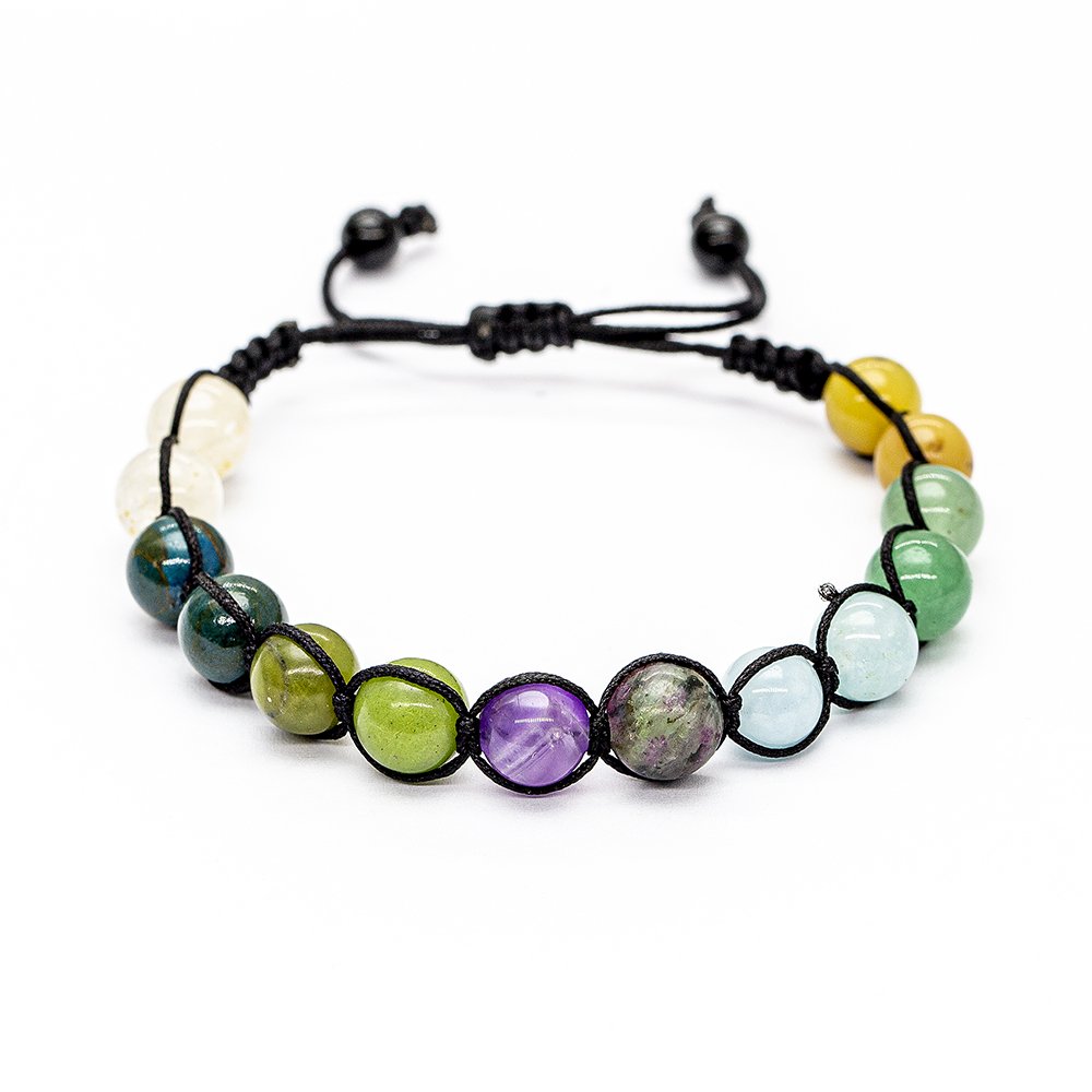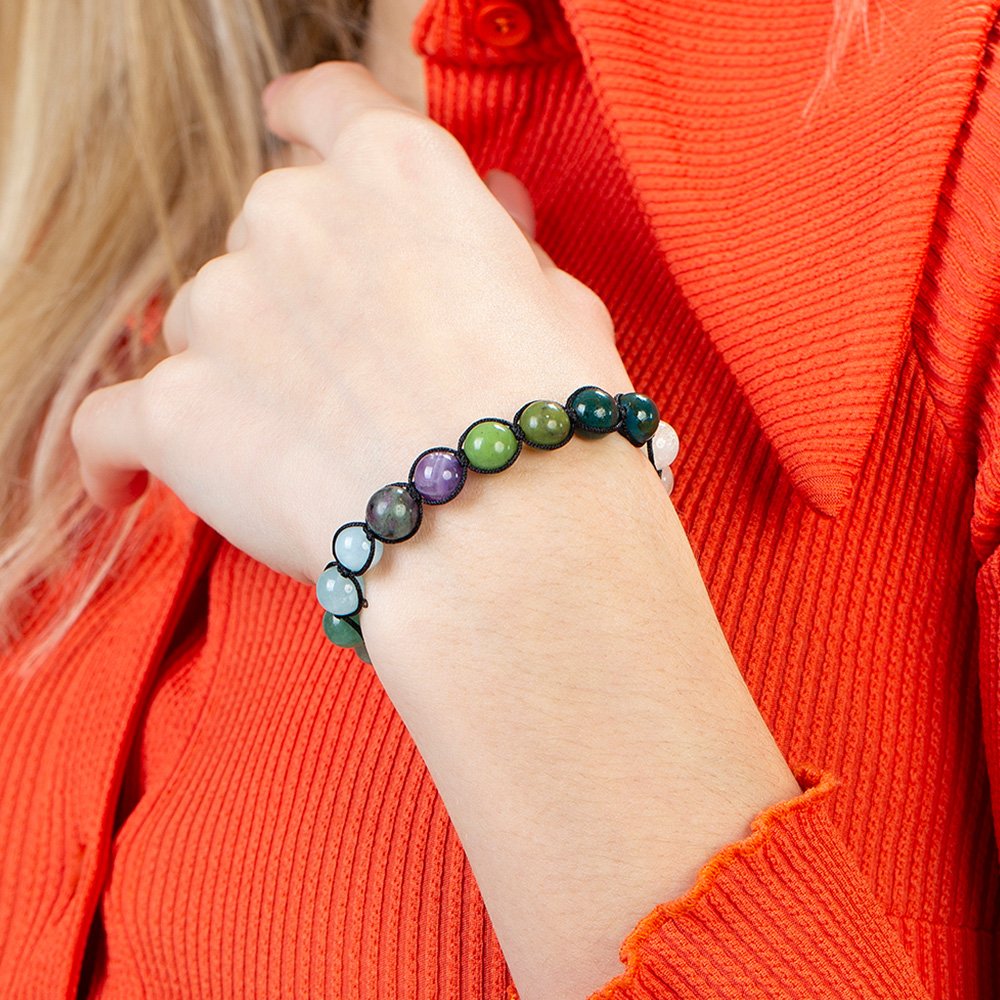 Makramee-geflochtenes Damen-Heilarmband im Kugelschliff mit mehreren Natursteinen