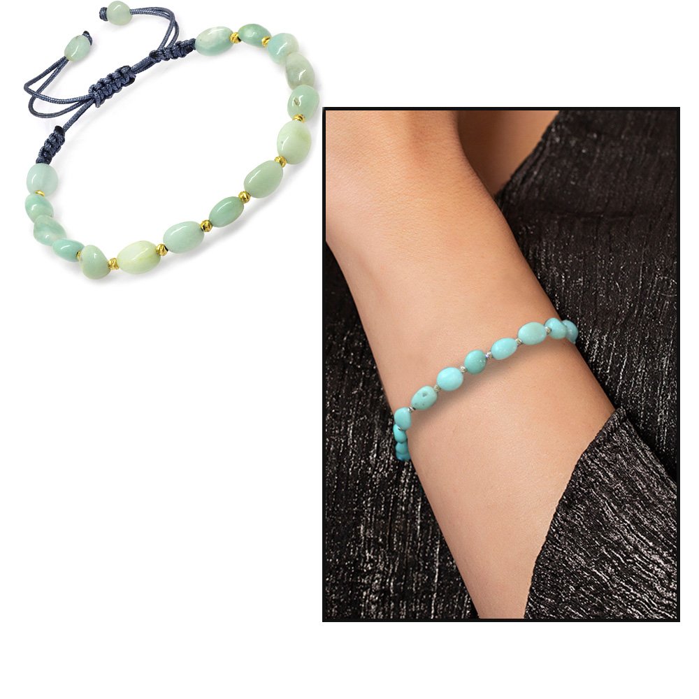 Makramee geflochtenes Damenarmband aus Amazonit-Naturstein im Naturschliff