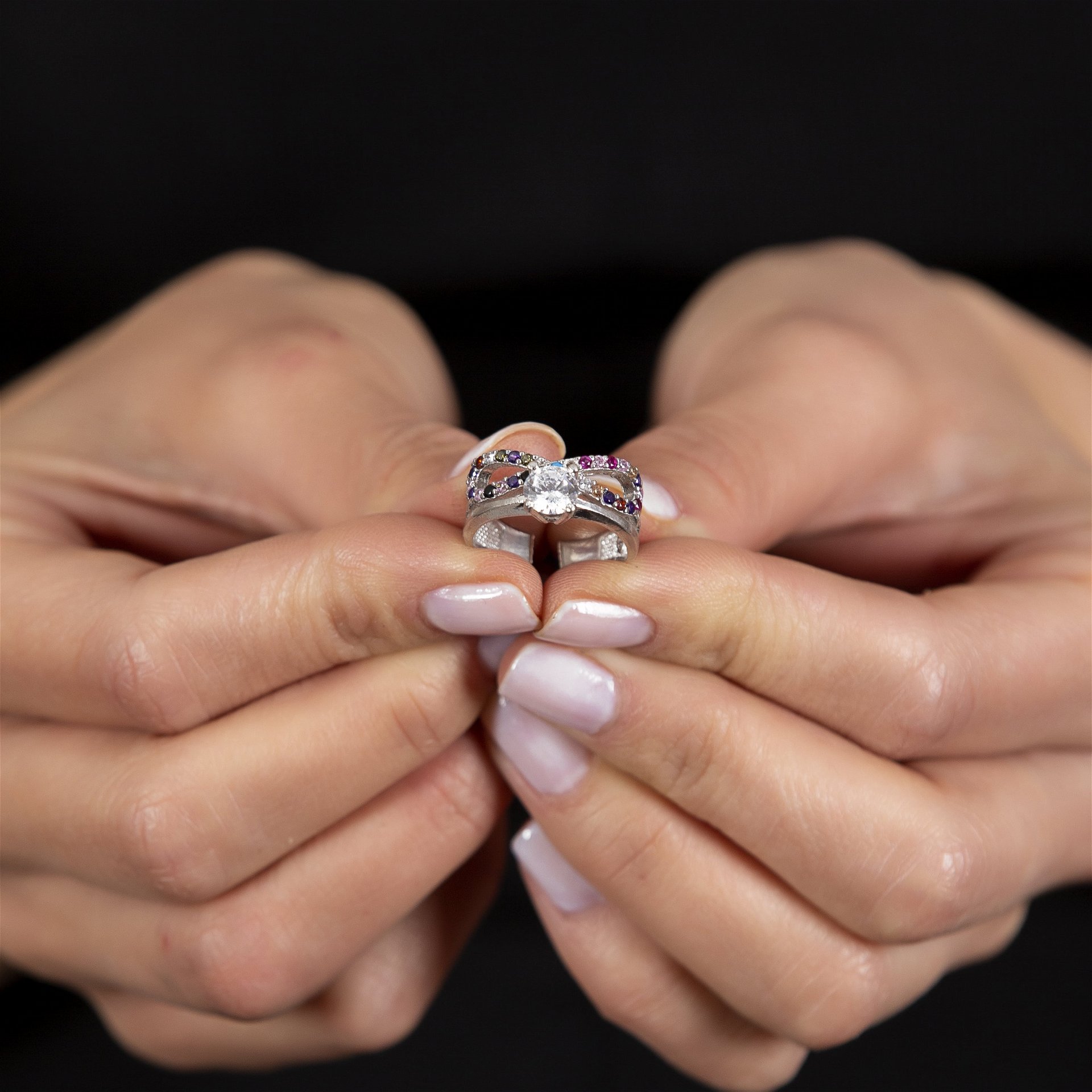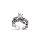 Mehrfarbiger Zirkon-Stein-Unendlichkeits-Design-Solitärring aus 925er-Sterlingsilber für Damen