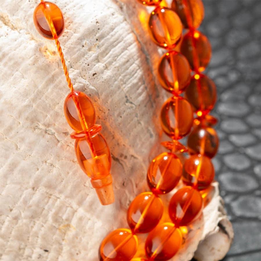 Geschickte orange gepresste Bernstein-Gebetsperlen im Gerstenschliff. Eigenschaften: Was ist gepresster Bernstein? Gepresster Bernstein ist ein Harz, das aus Bernsteinpulver und verschiedenen Chemikalien hergestellt wird. Entgegen der landläufigen Meinung enthält es wiederum kein Plastik, also keine petrochemischen Produkte. Gepresster Bernstein gilt aufgrund der Komplexität seines Herstellungsprozesses als besonderes Material. Gepresster Bernstein ist ein Synthesestein, der durch die Wechselwirkung von Bernstein mit anderen Steinen entsteht. Wir präsentieren Squeezed Kehribar, das mit seiner samtartigen Textur und der einfachen Handhabung für Männer unverzichtbar ist, in verschiedenen Ausführungen…
