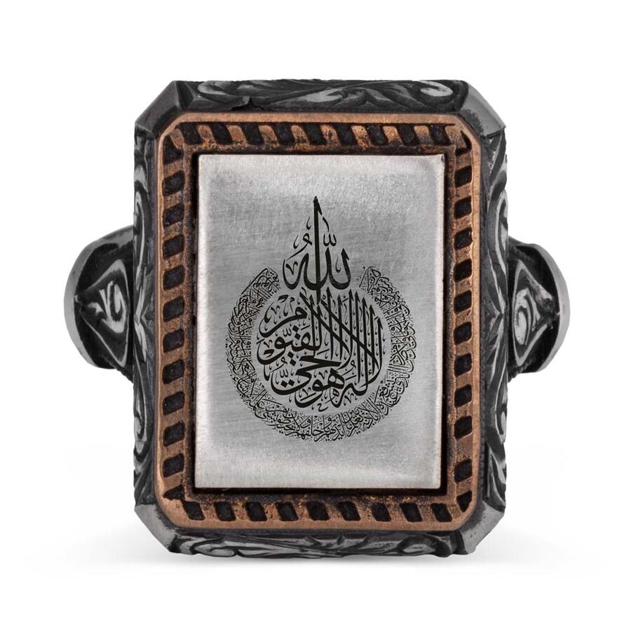 Meisterhandgefertigter rechteckiger Ayet-el-Kursi-Herrenring aus 925er-Sterlingsilber. Produktmerkmale: Hergestellt aus 925er-Sterlingsilber. Es wird speziell von Hand gefertigt. Es wiegt etwa 13-14 Gramm. Es kann je nach Ringgröße variieren. Sie können die Lebensdauer Ihres Silberrings verlängern, indem Sie auf Seife, Deodorant, Schweiß und Wasser verzichten. Ihre Ringgröße können Sie kostenlos beim Juwelier erfahren. Ayet-el Kursi wird mittels Laserverfahren in den Ring eingraviert.