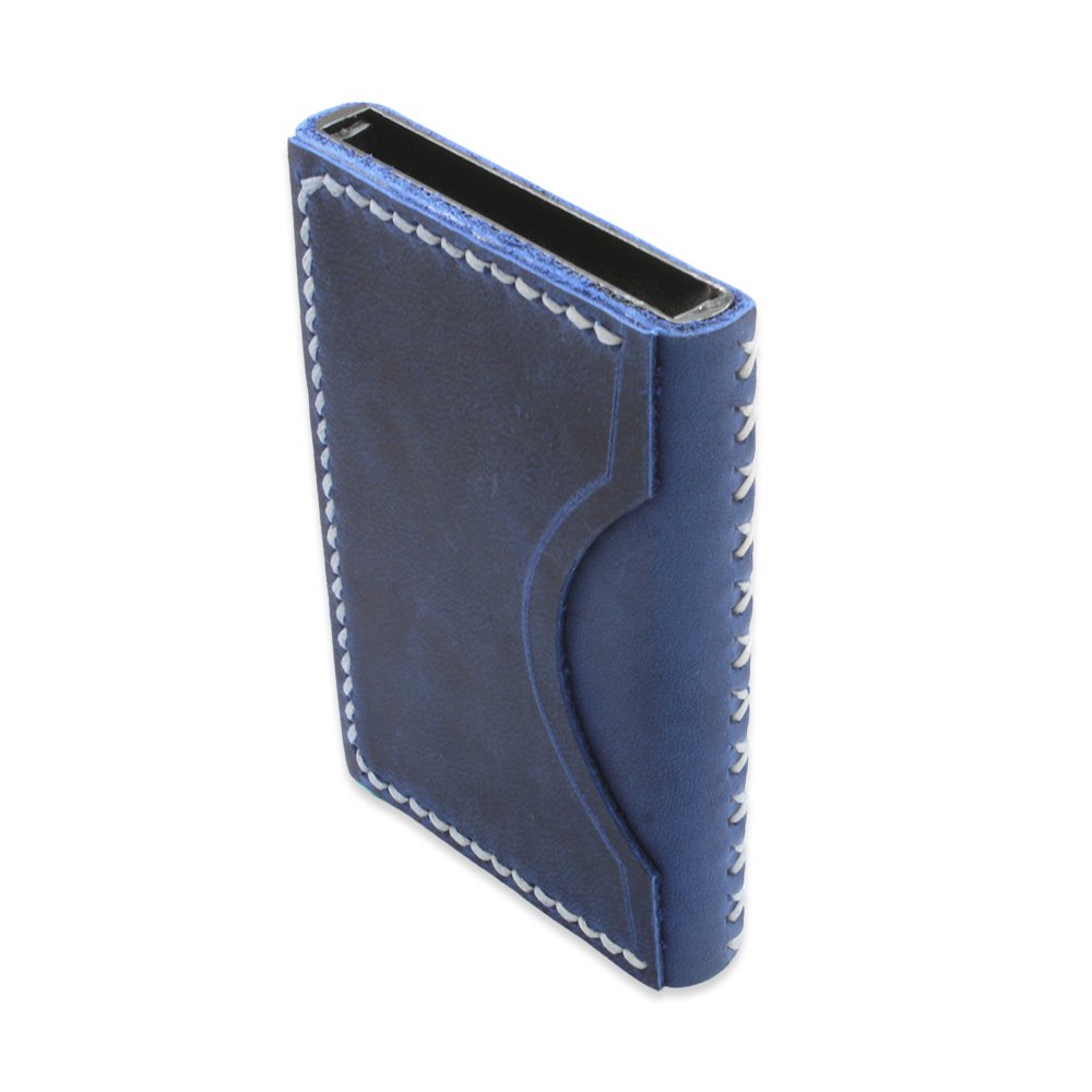 Minimal Tasarım Tamamı El Dikişi Mavi Crazy Deriden Mekanizmalı Kişiye Özel İsim/Harf Yazılı Kartlık-Cüzdan